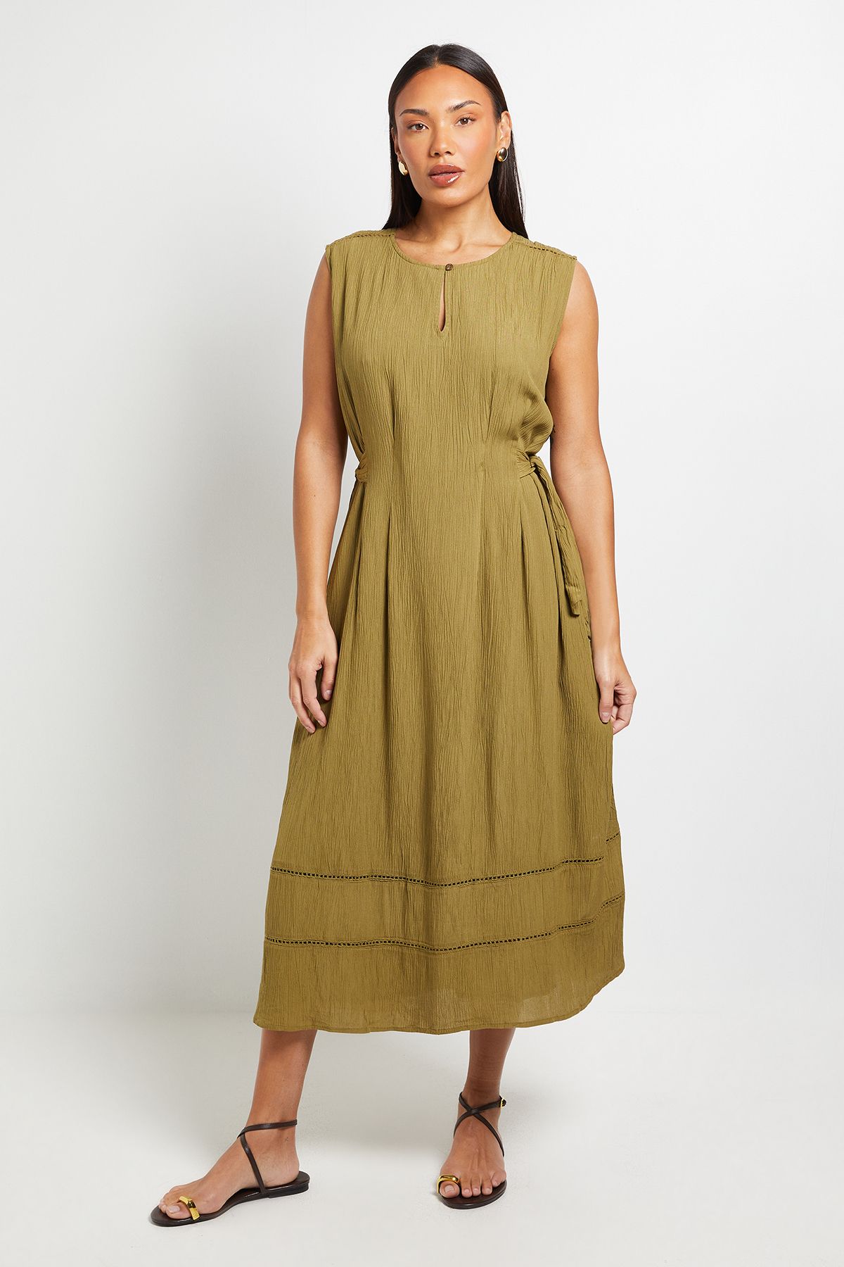 Principles Womens Khaki Ladder Trim Tie Detail Midi Dress Viscose -...