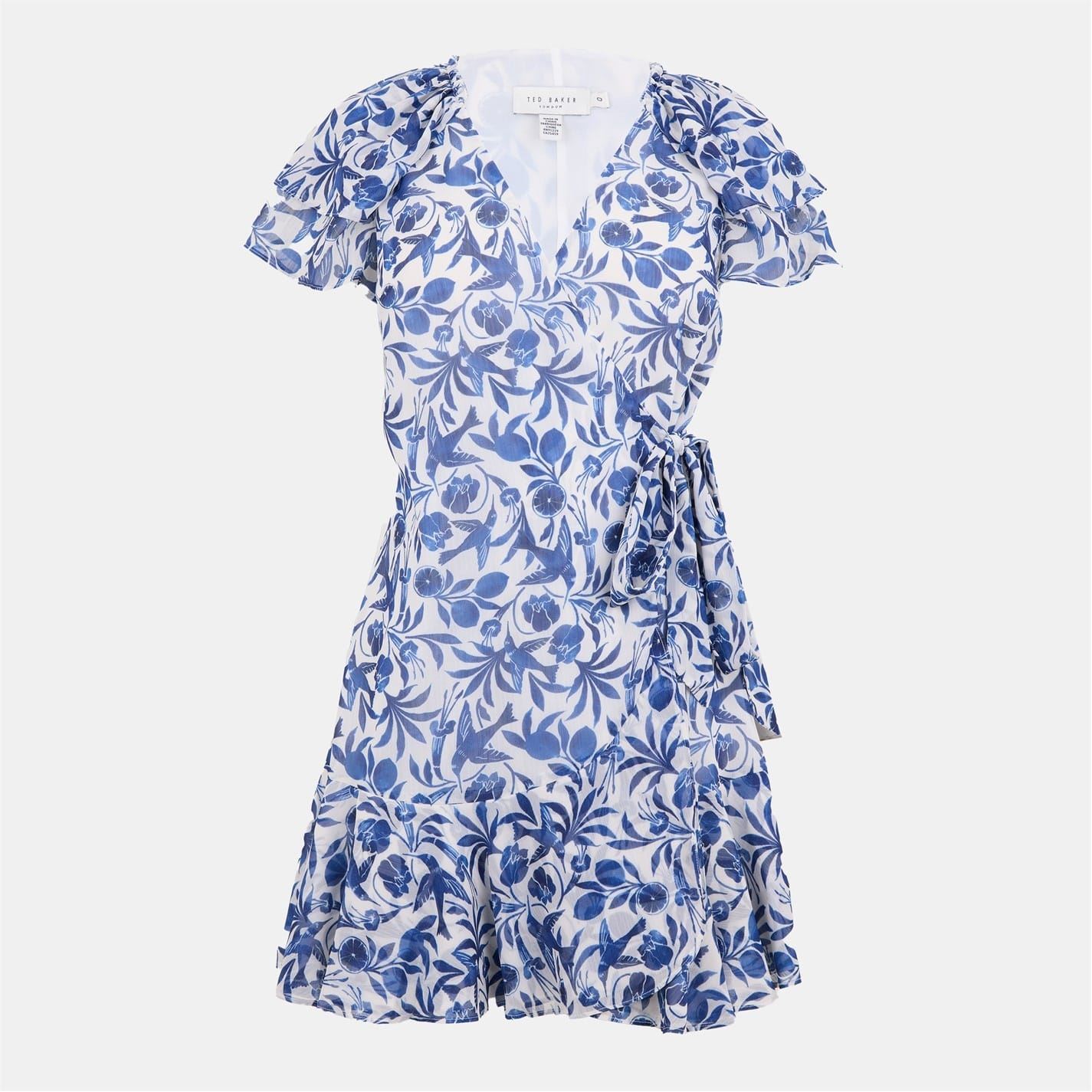 Ted Baker Womens Woven V-neck Mini Wrap Dress in Blue - Size 8 UK |...