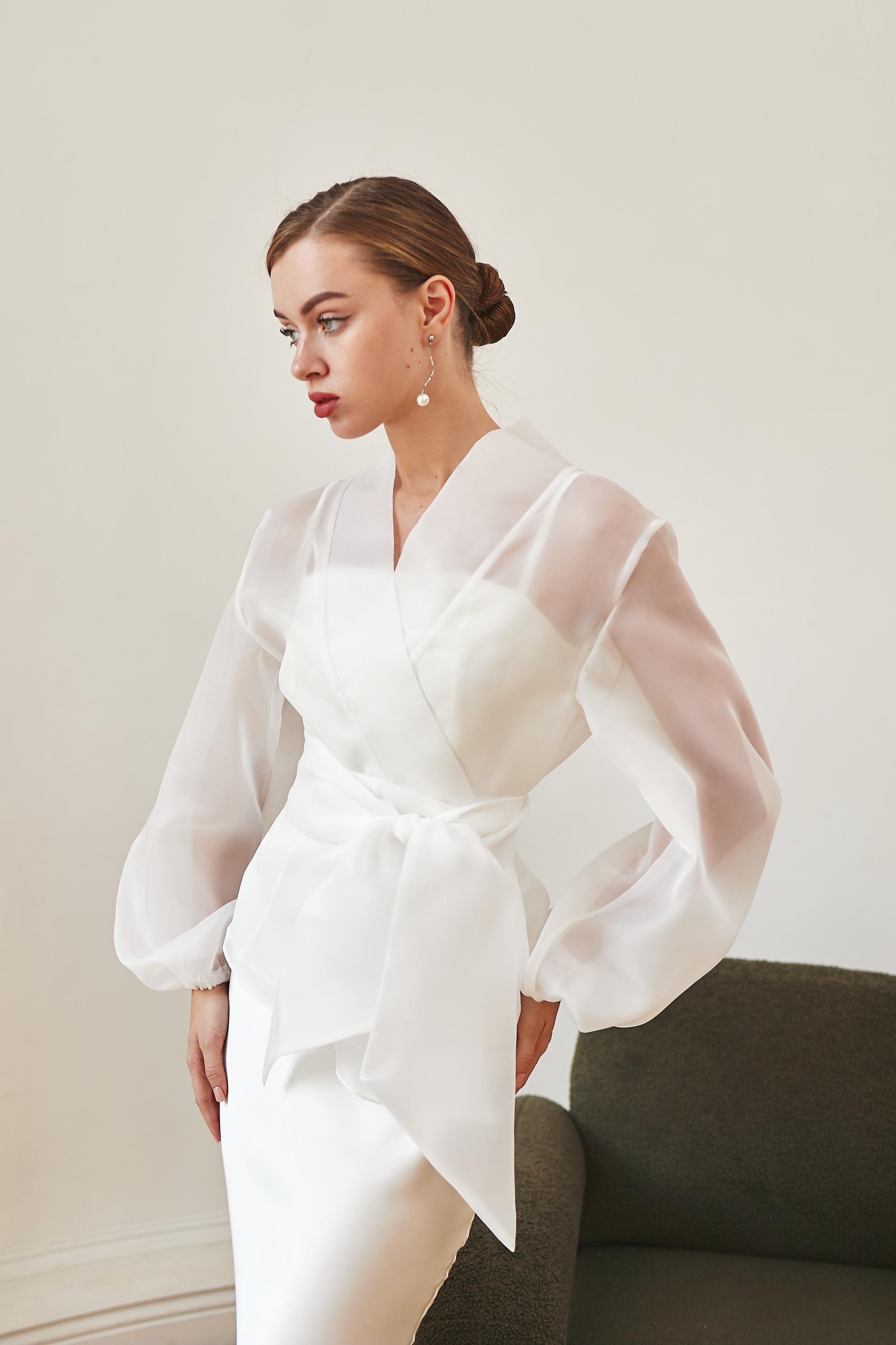 Tulle Handmade Bridal Overlay jacket l Blouse| Bridal Separates |Wedding dress Cover up| Sheer Overl...