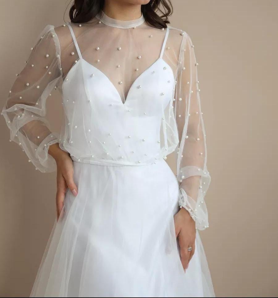 Pearl Wedding Topper/Wedding Tulle Bolero/Bridal Long Sleeve Top/Br...