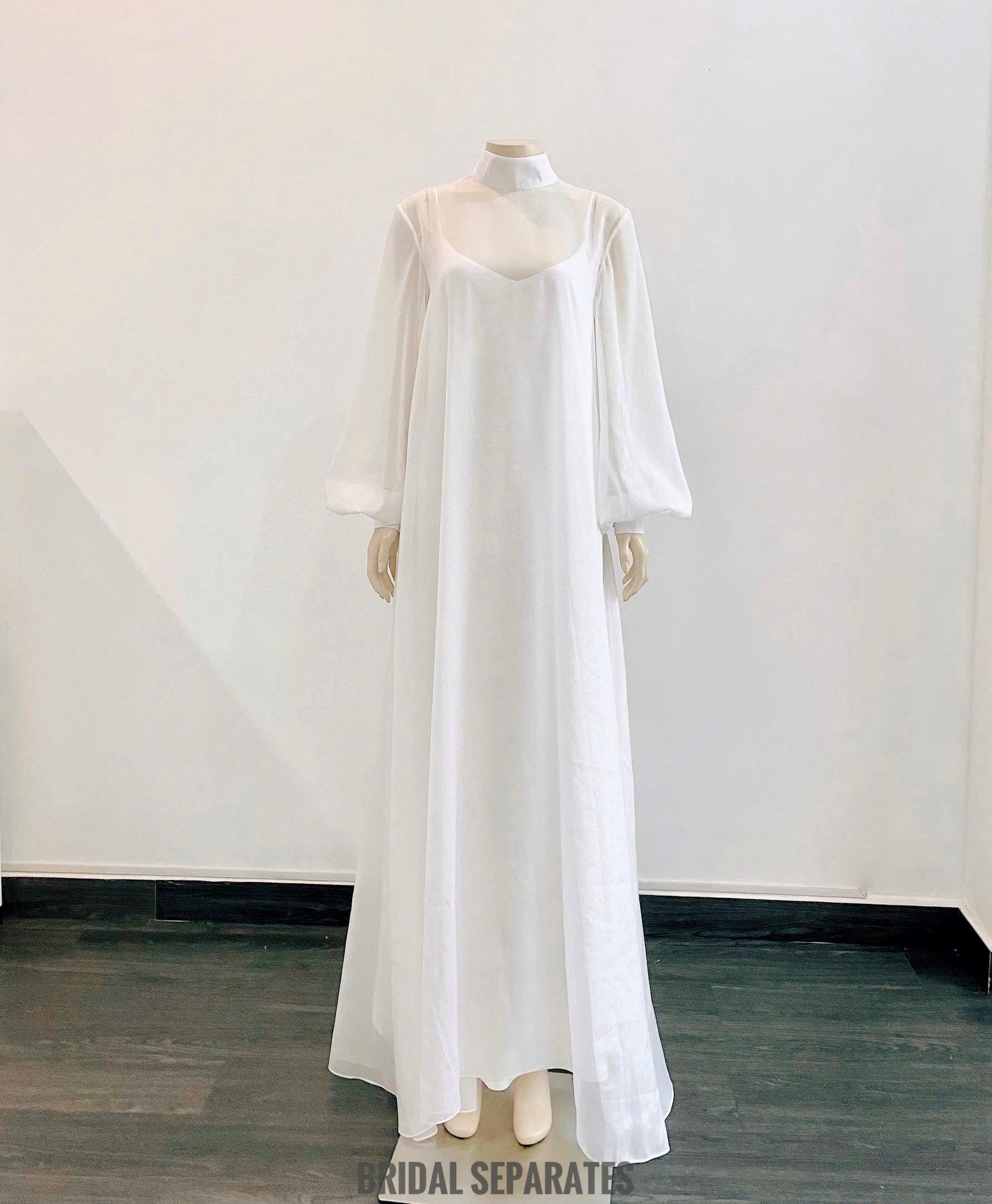 Long Sleeves Bridal Shower Dress, Organza Bridal Dress Cover Up, Br...