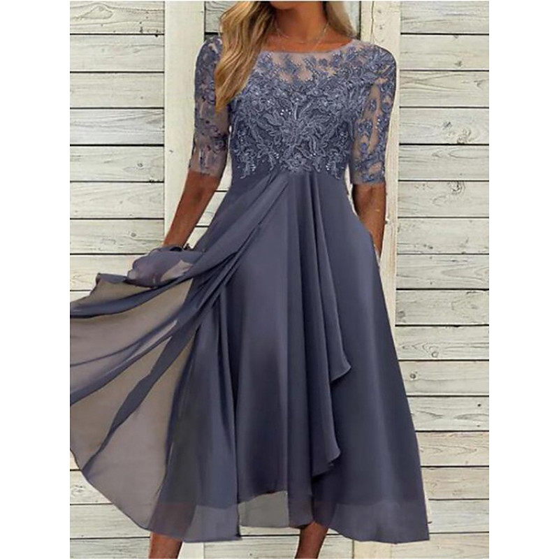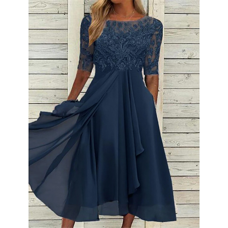 Women's Midi Dress Lace Dress Cocktail Dress Wedding Guest Dress Ch...
