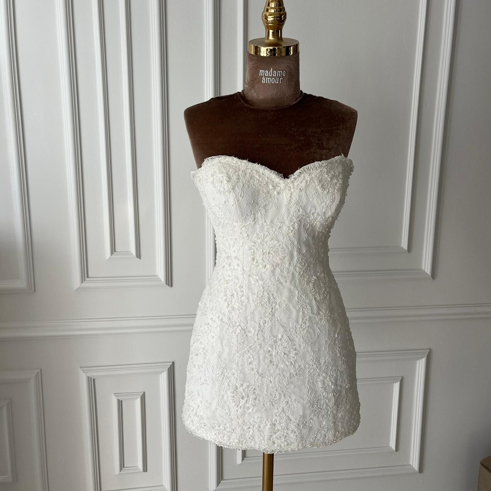 Modern & Elegant Mini Wedding Dress - Lace Corset Bridal Gown !! JUST THE DRESS NOT WITH OVERSKI...