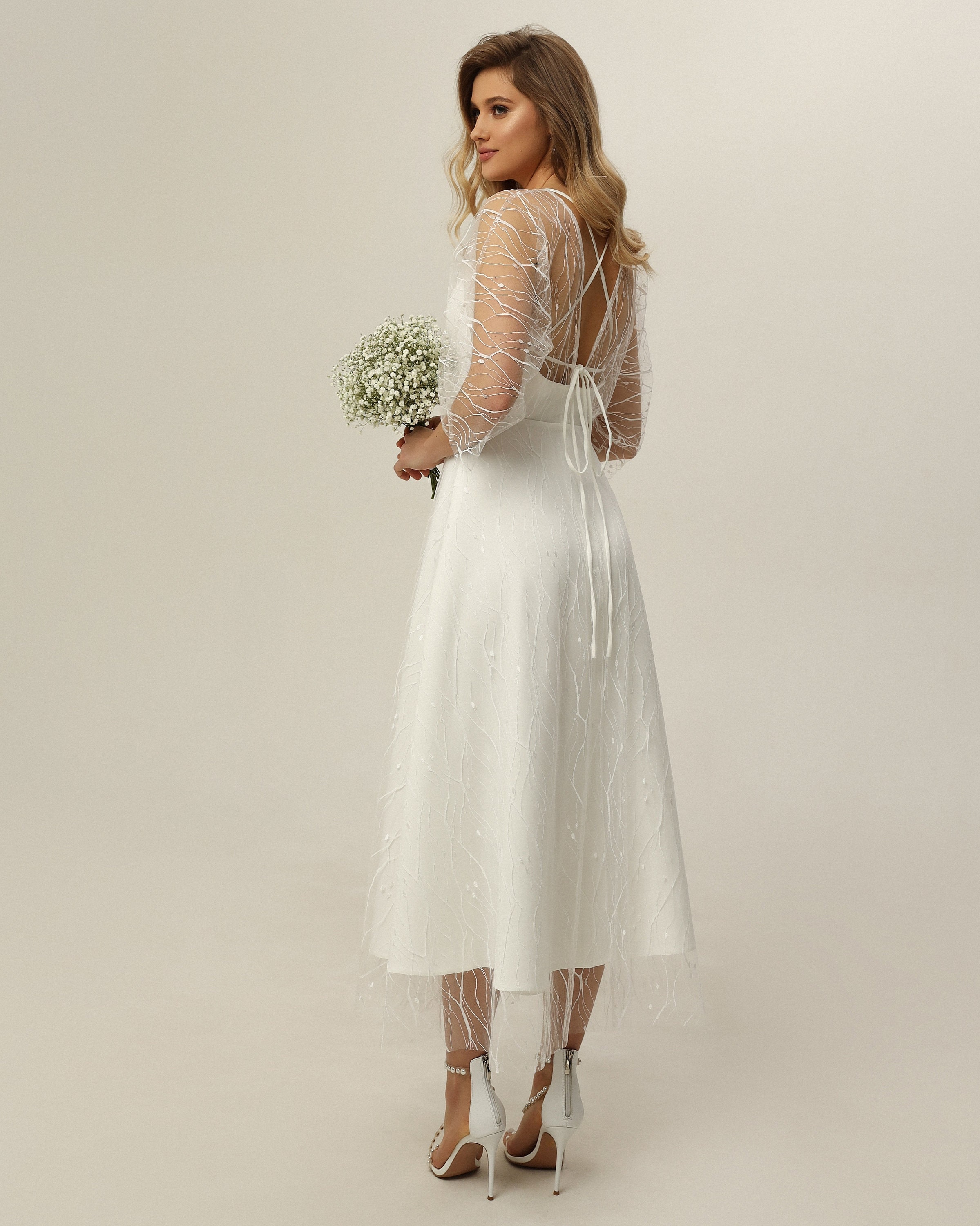 Reception dress, Tea length wedding dress, Bridal shower dress, Wed...