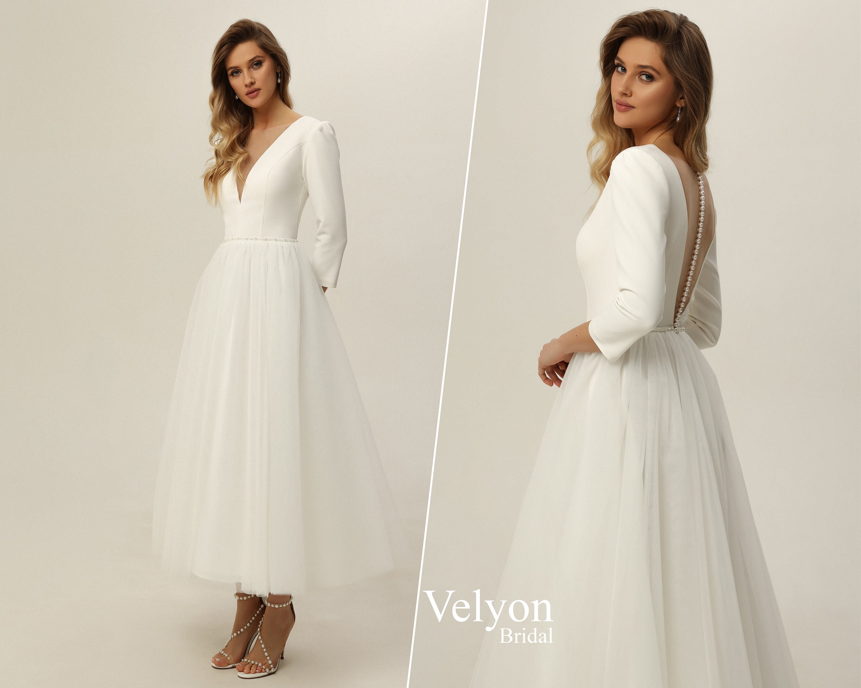 Discover the perfect wedding dress from chic short and elegant tea-length styles to timeless midi re...