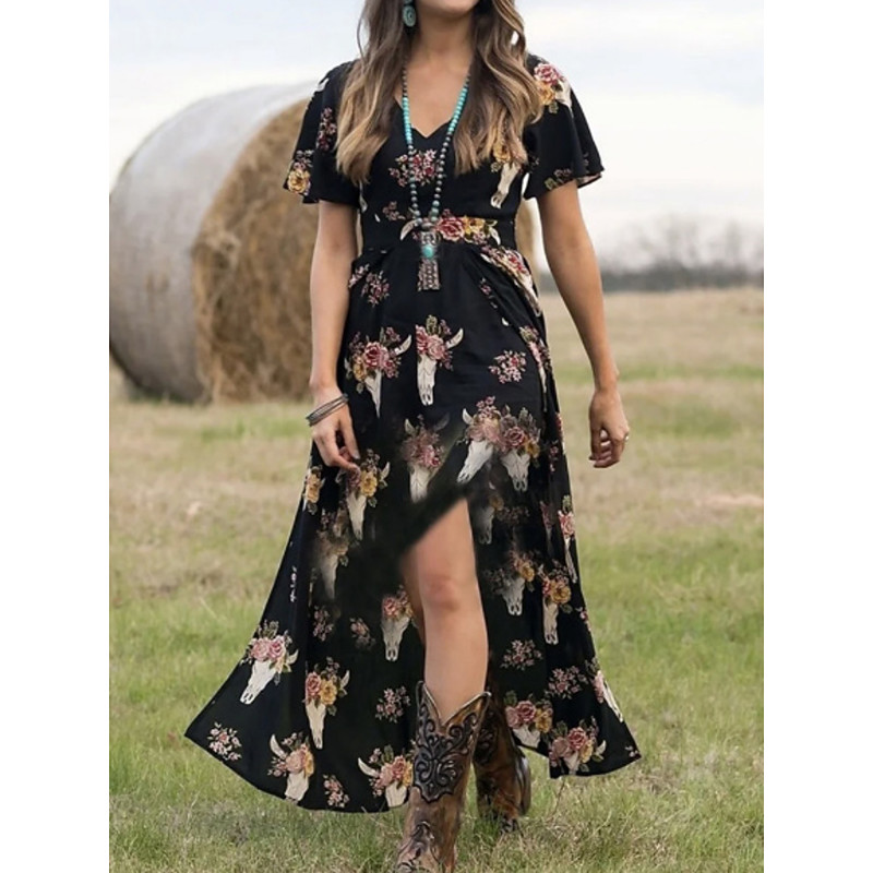 Women's Boho Dress Western Dress Vintage Maxi Dress A Line Dress Su...