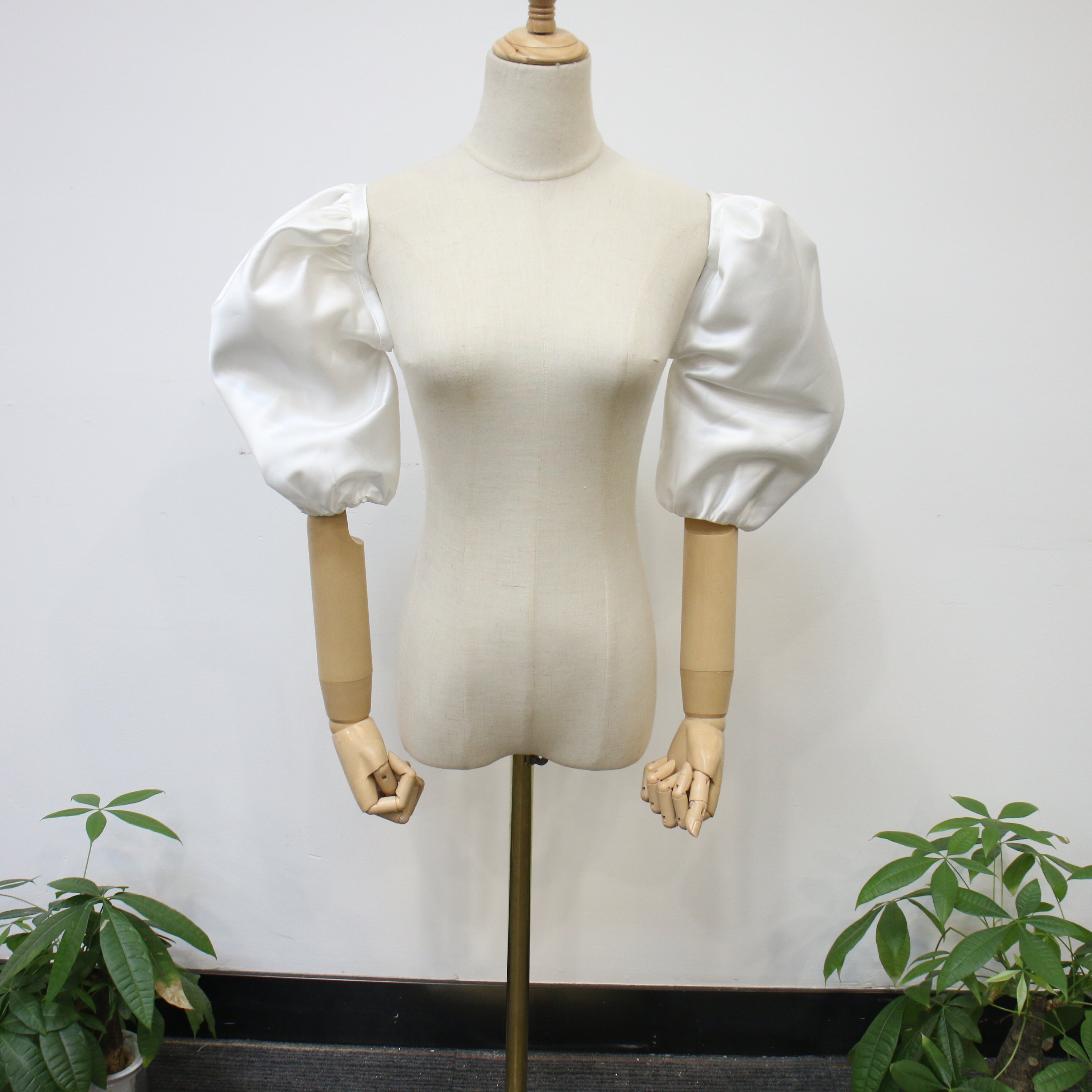 Detachable Short Puffed Sleeves, White Satin Wedding Dress Sleeves,...