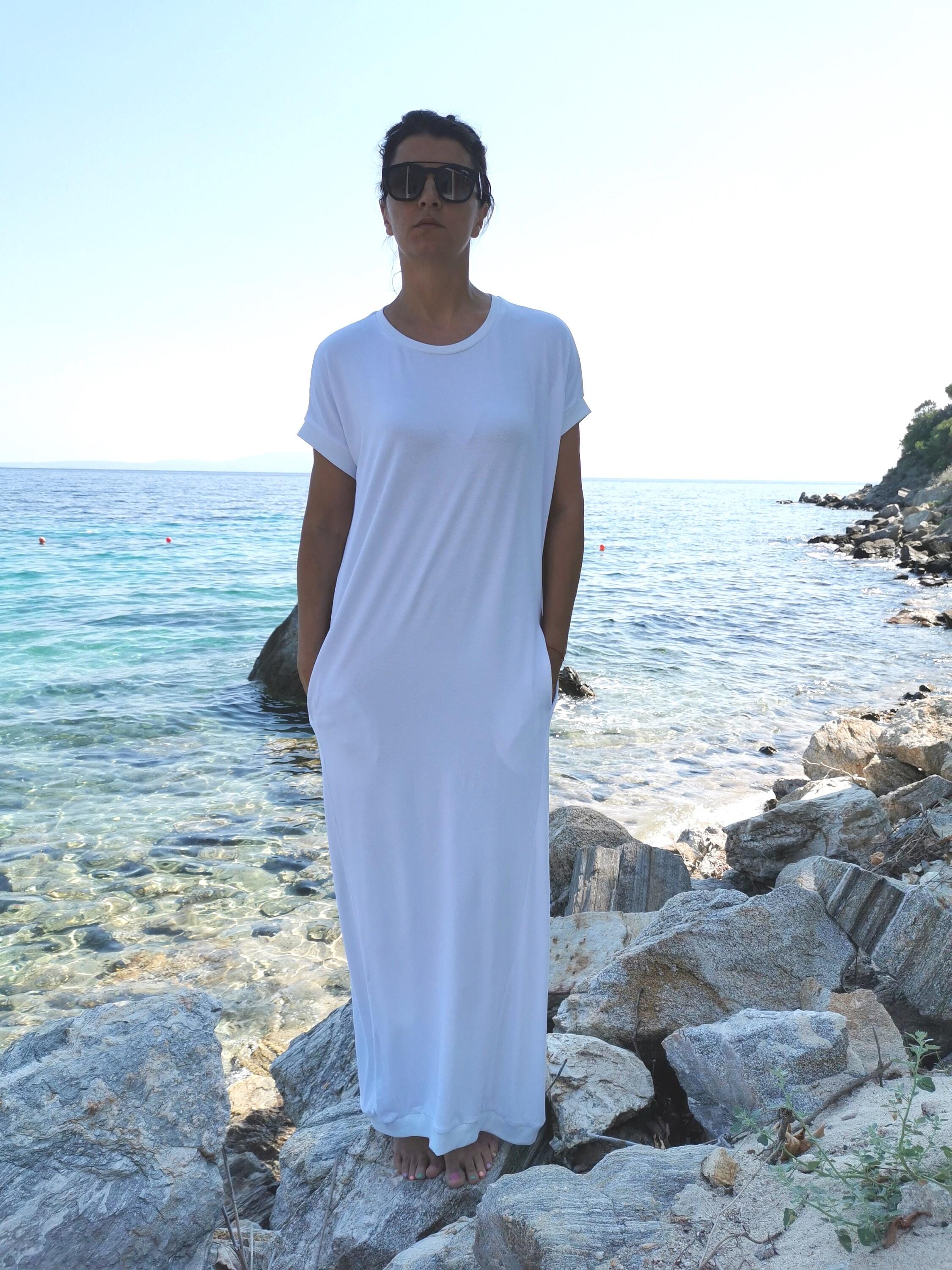 Long White Dress, Plus Size Maxi Dress, Oversized White Dress, Whit...