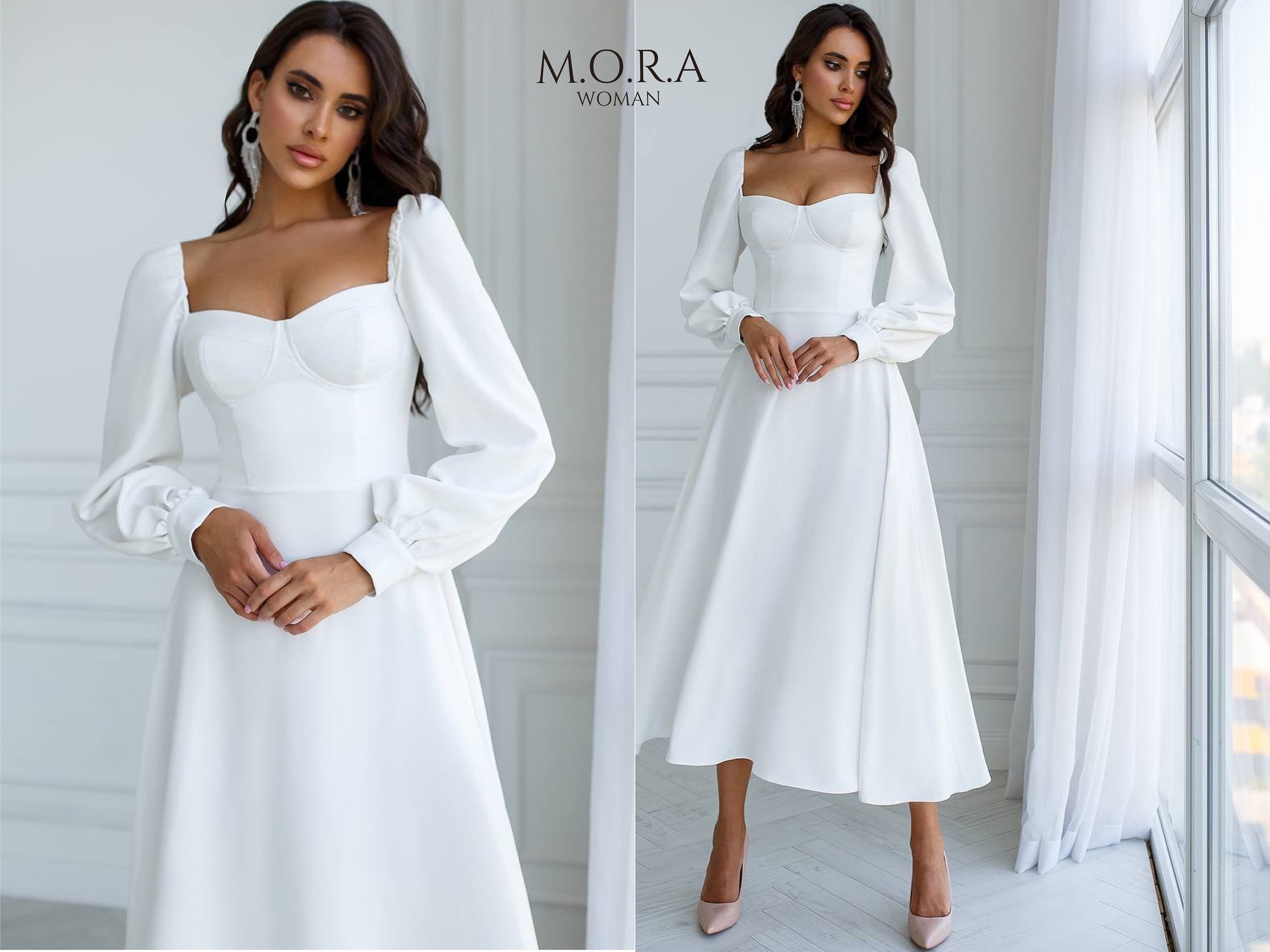 White Dress, Long Sleeve White Dress, White Midi Dress, White Forma...