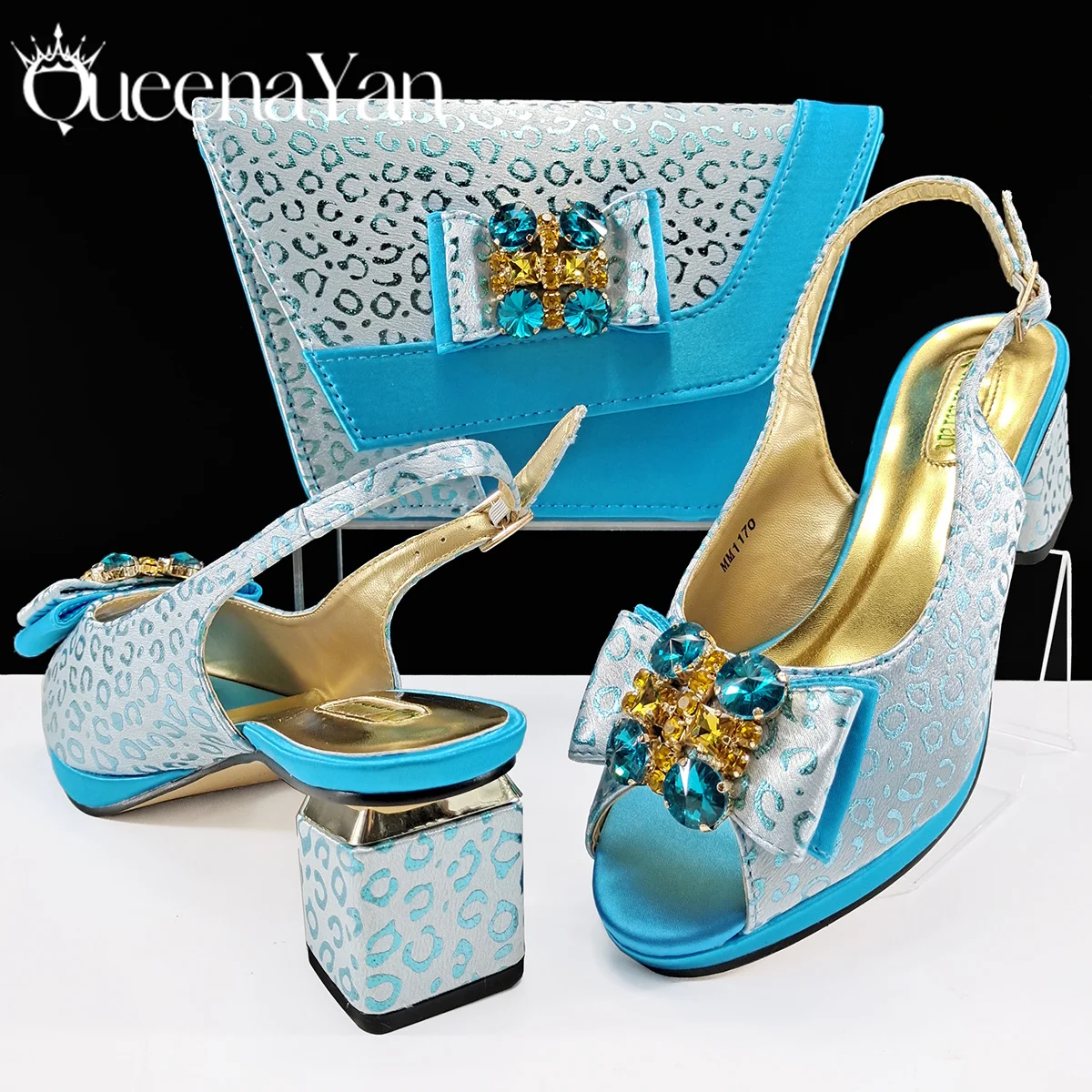 Queena Yan Light Blue Elegant Italian Rhinestone Wedding Shoe and Bag Set -Women Heels and Matching ...