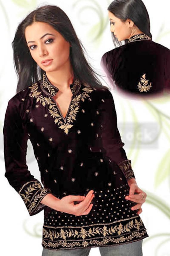 Women's Long Sleeve Black Tunic Shirt-Women's Embroidered Designer ...