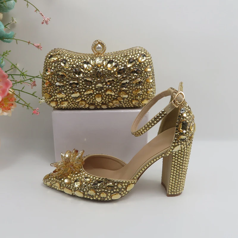 BaoYaFang Champagne Gold Wedding shoes and purse for Women Bridal Fashion High Pumps Party Shoe and ...