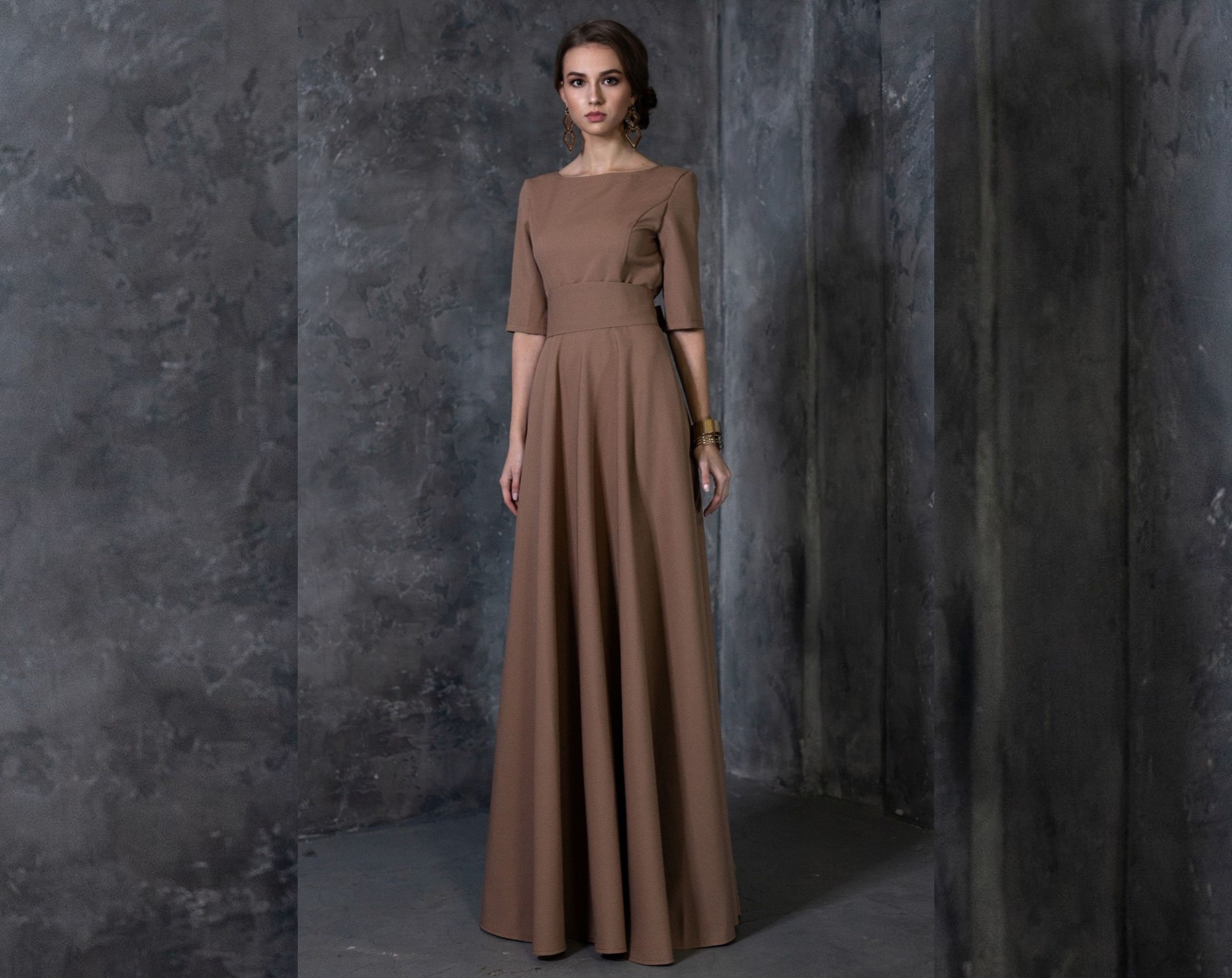 "Women Formal Dress, Evening Dress, Brown Maxi Dress Brown long dress with circle skirt. Dress ...