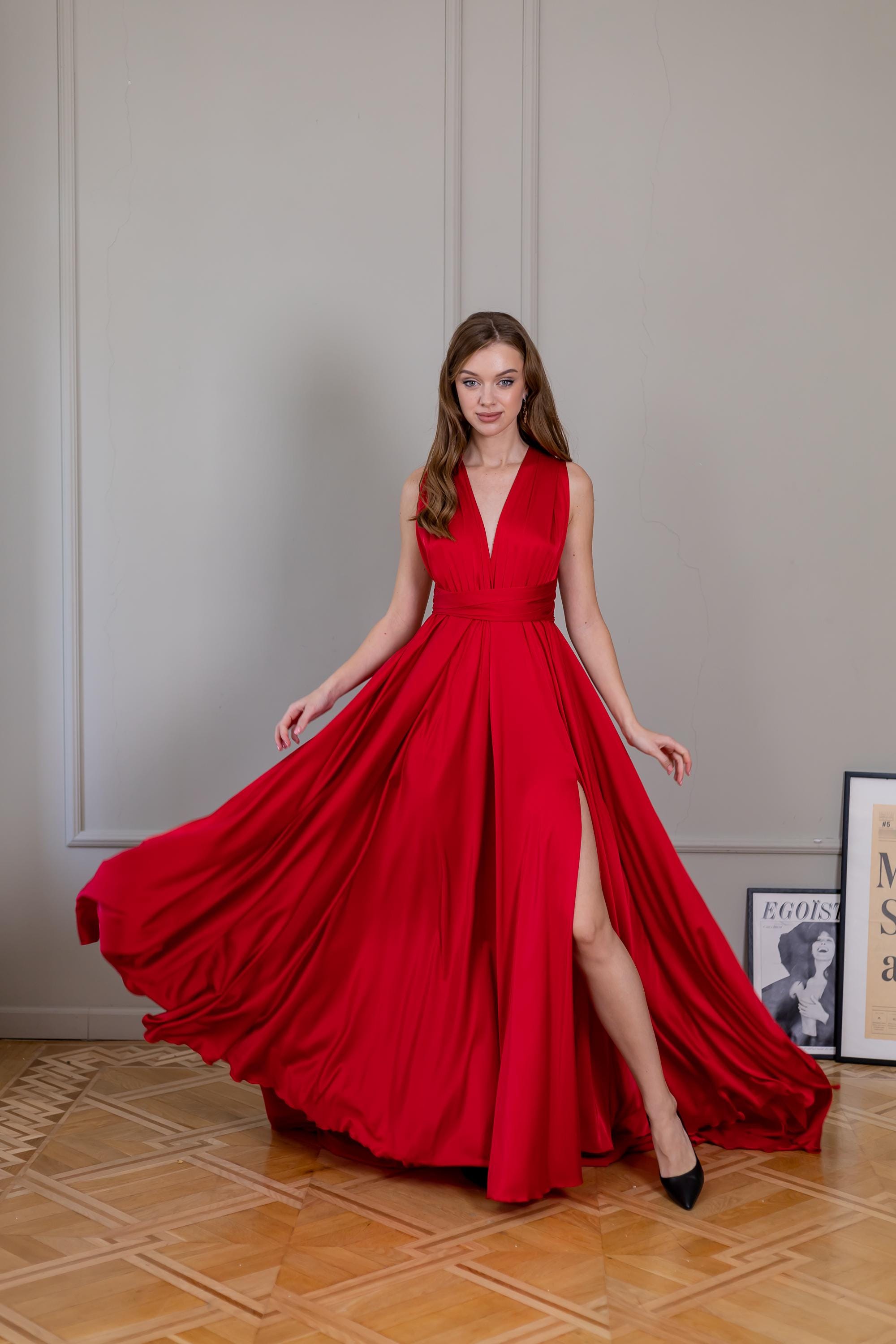 Red Maxi Dress Cocktail Dress Elegant Woman Dress For Wedding Guest...