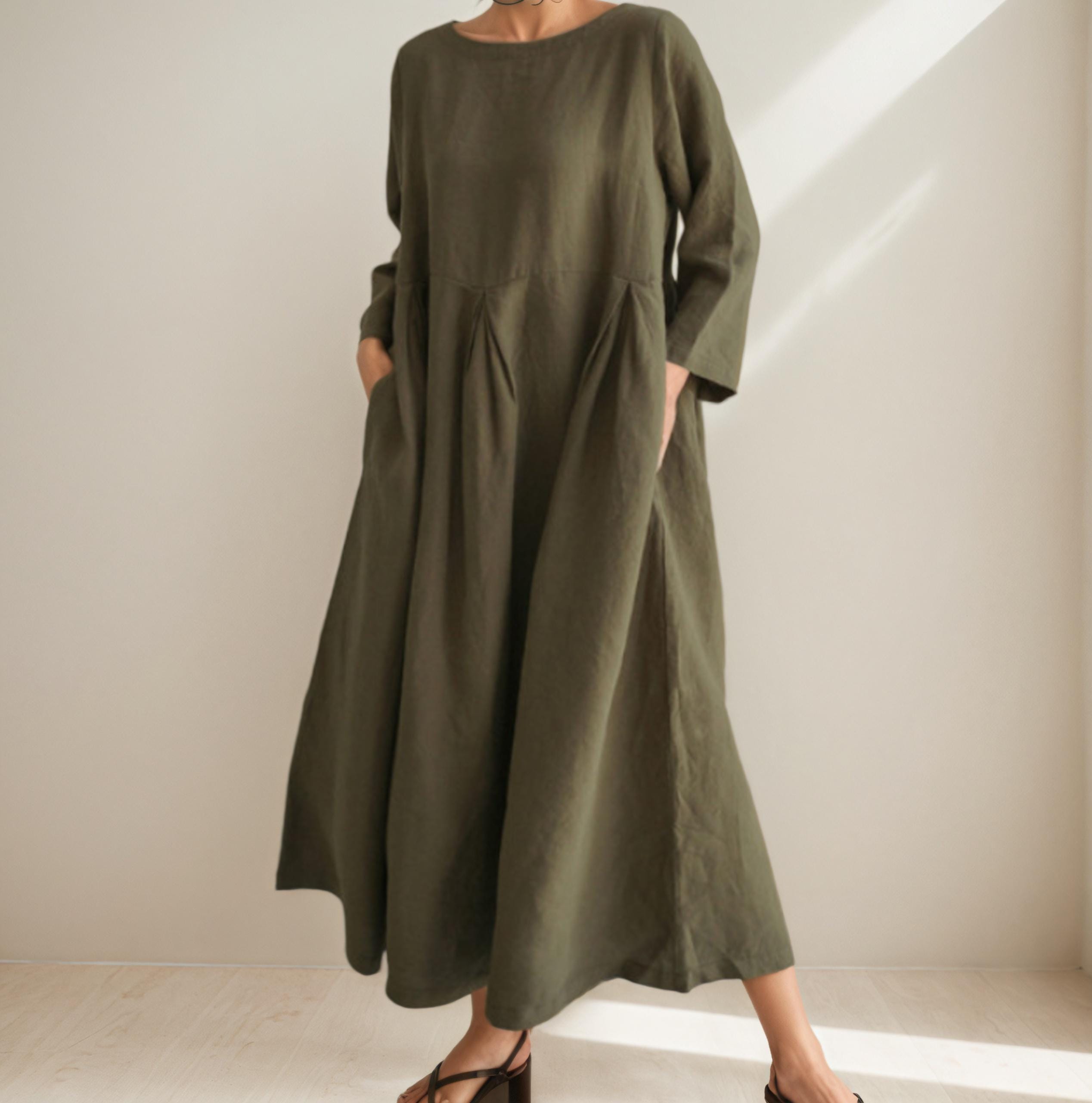 Woman Linen Dress, Cocktail Dress, Minimalist Dress, Modest Linen D...