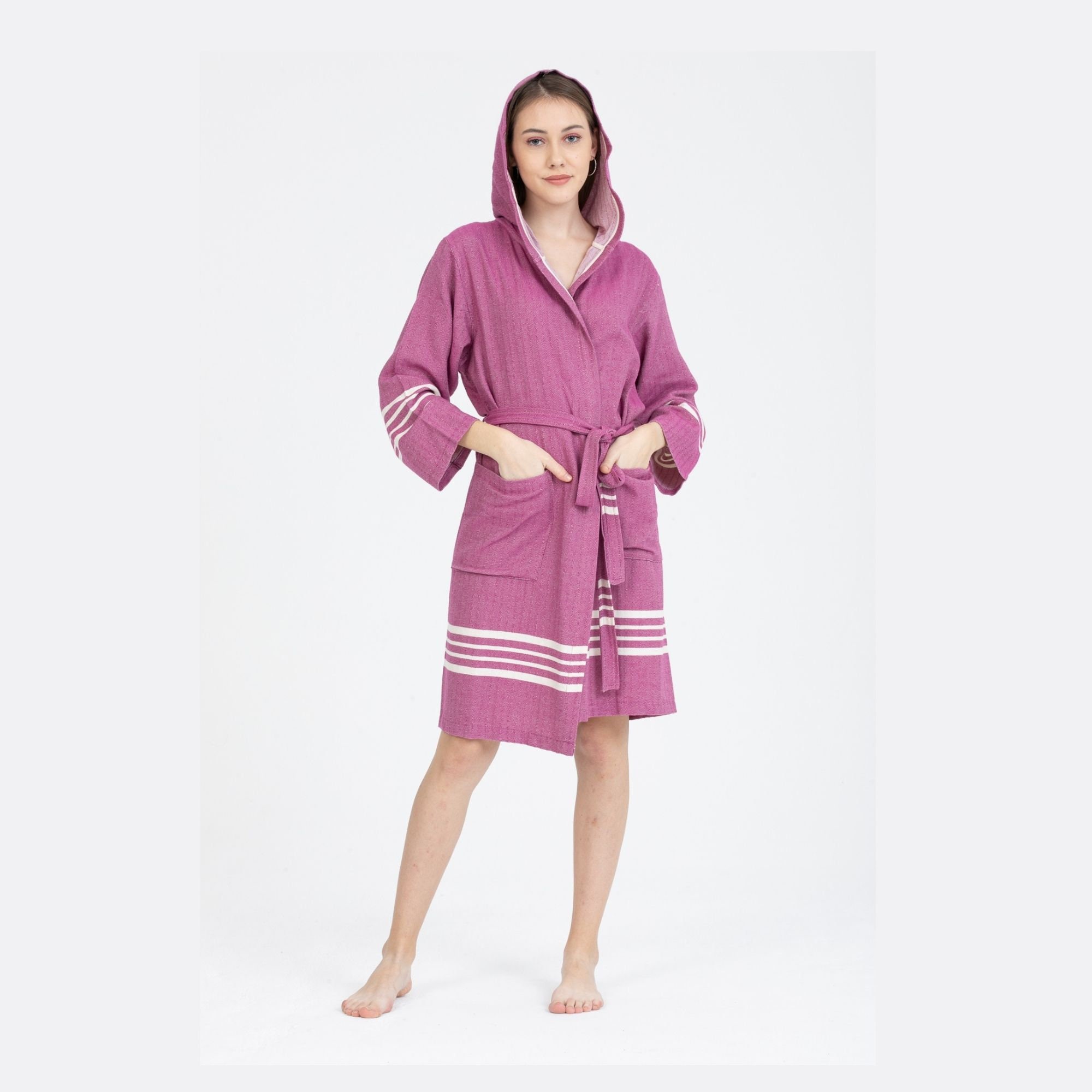TOPRAK Turkish Towel Bathrobe with Hood is high-quality, 100% natural Turkish cotton with Fringe. Ab...