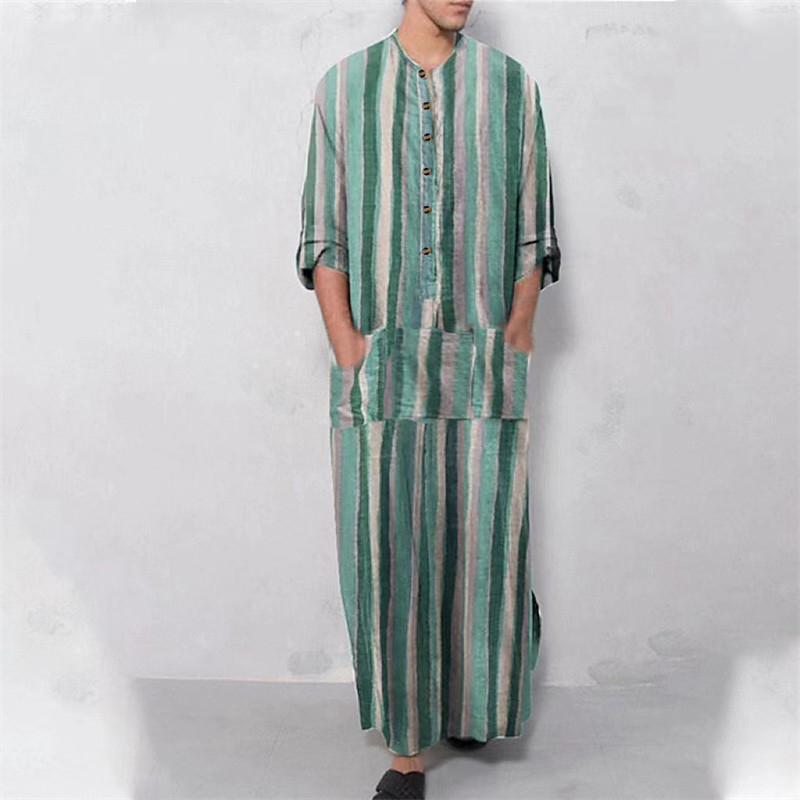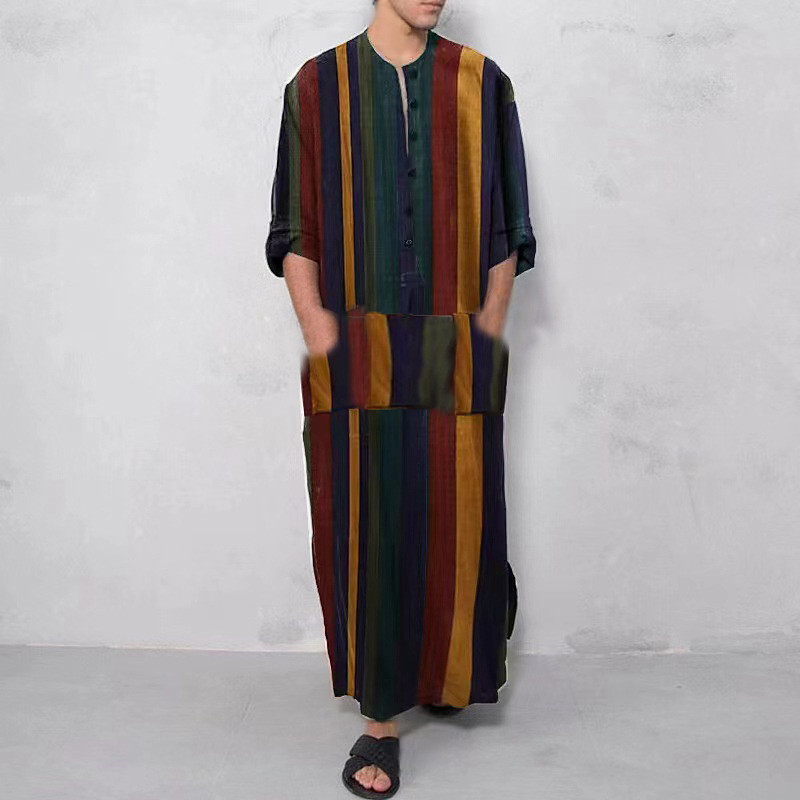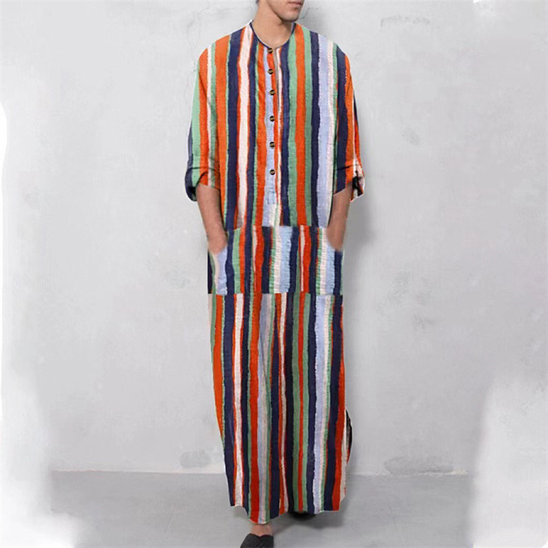 Men's Loungewear Nightgown Nightshirt Stripe Stylish Comfort Kimono...