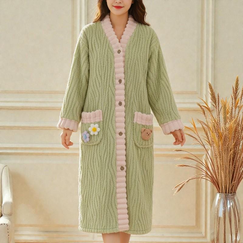 Couple Flannel Nightgown Women's Autumn Winter Thick Warm Robe Long...