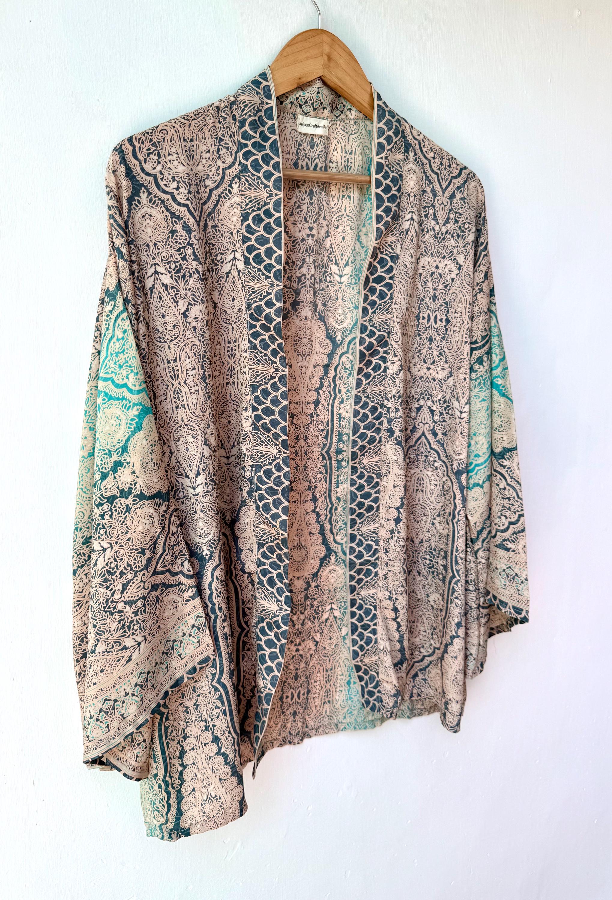 Indian Vintage Silk Kimono / Men's Short Silk Kimono / Cardigan Sil...