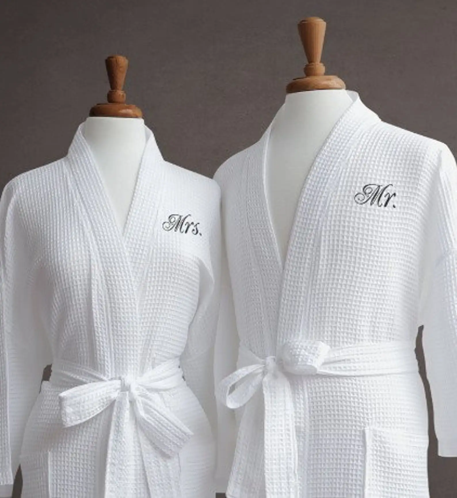 Personalized Mr Mrs Unisex Waffle Weave Robe with Pockets Monogrammed Bath Robes Embroidered Wedding...