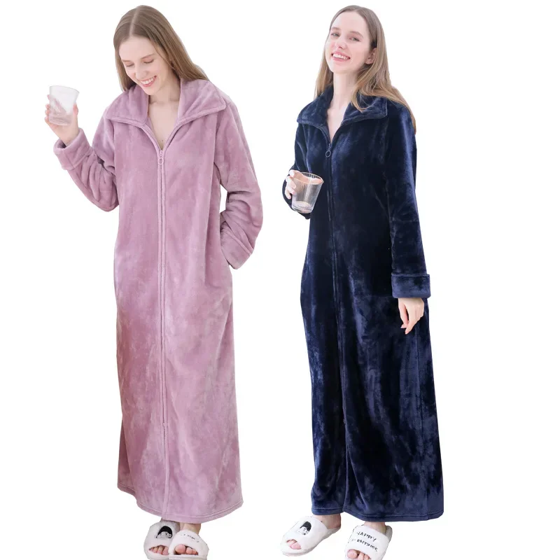 Women Ultra Long Plus Size Thick Warm Bathrobe Lovers Winter Thermal Flannel Bath Robe Men Robes Pre...