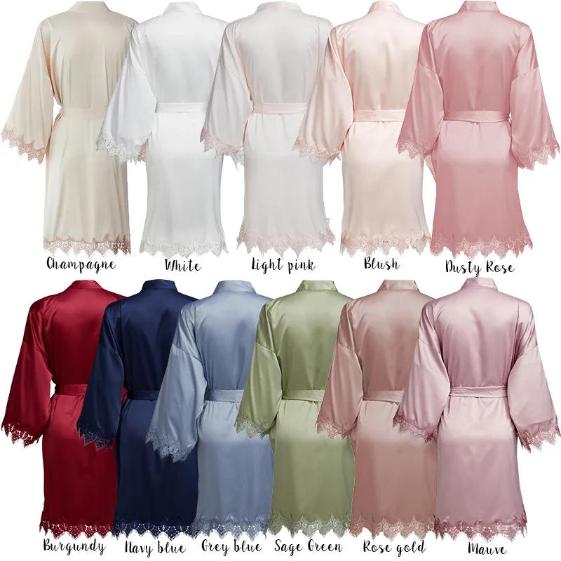 Bridal Robes Matte Satin Lace Robe Kimono Wedding Robe Bride Bridesmaid Robes Plus Size Women Sleepw...