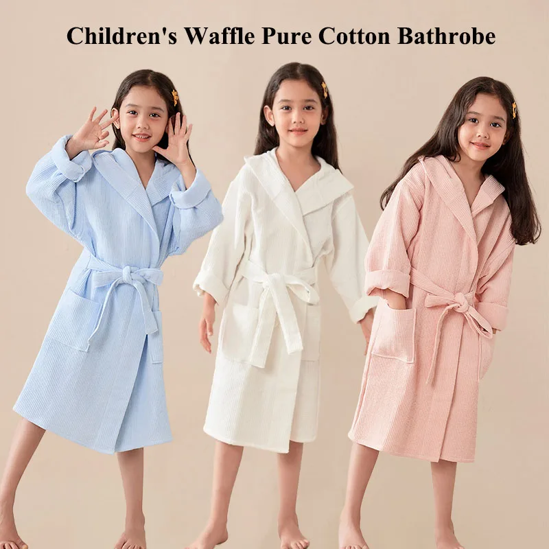 Cotton Waffle Kids Bathrobe - A Class 2025 S/S Soft Absorbent Non-Shedding Belted Homewear After Bat...