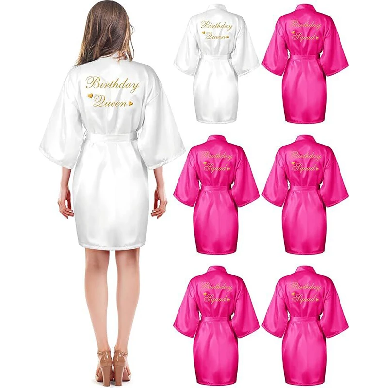 6 Pcs Women's Birthday Squad Robes Birthday Party Queen Spa Bathrobe Kimono Spa Robe Sleepover Party...