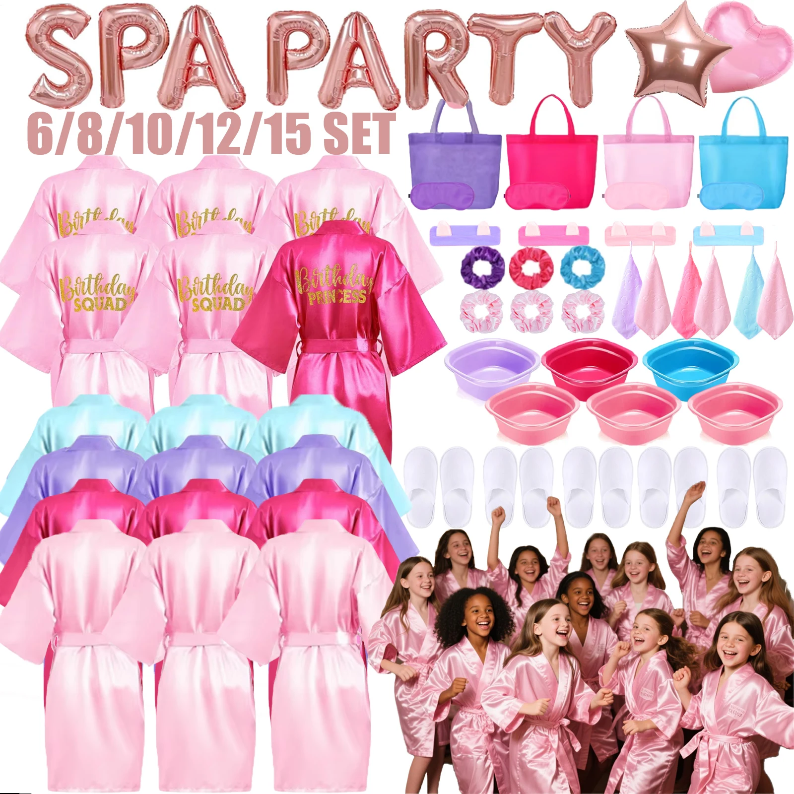 15-6Set Spa Party Robe for Girls Kids Birthday Party Supplies Sleep...