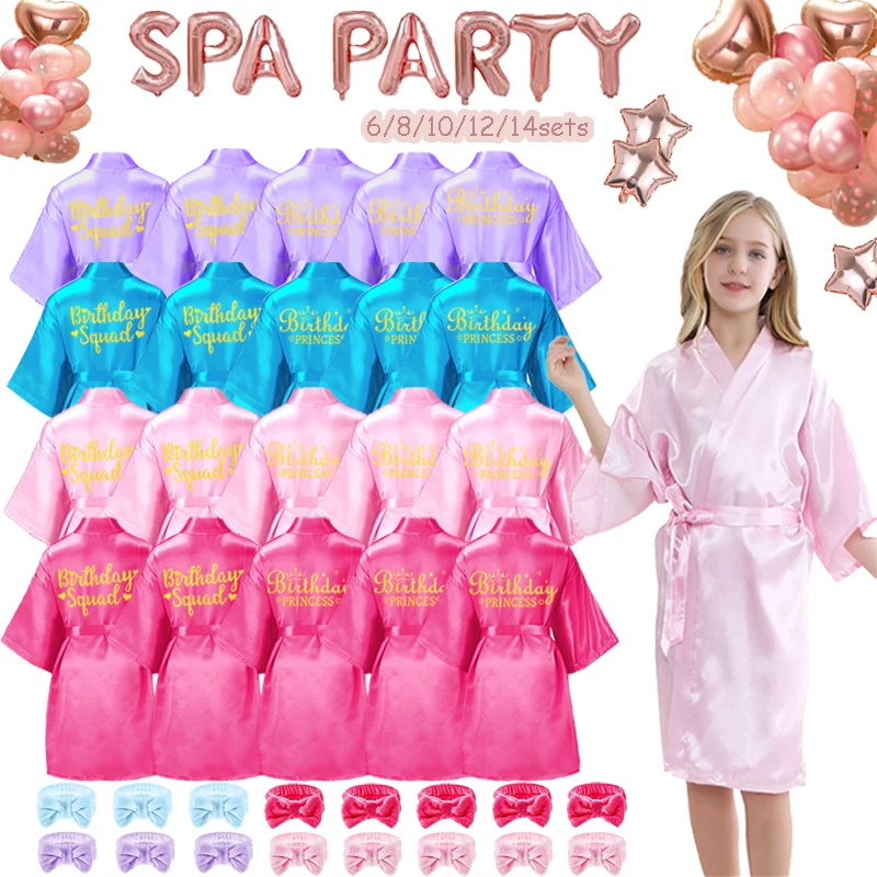 6-15 Set Spa Robes for Girls Spa Party Birthday Squad Robe Kids Satin Bathrobe Princess Kimono Girl ...