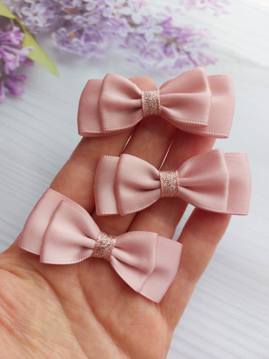 Small Satin Ribbon Bows 6 x 2.2 mm Wide Rose Gold Crafts Bows Decor...