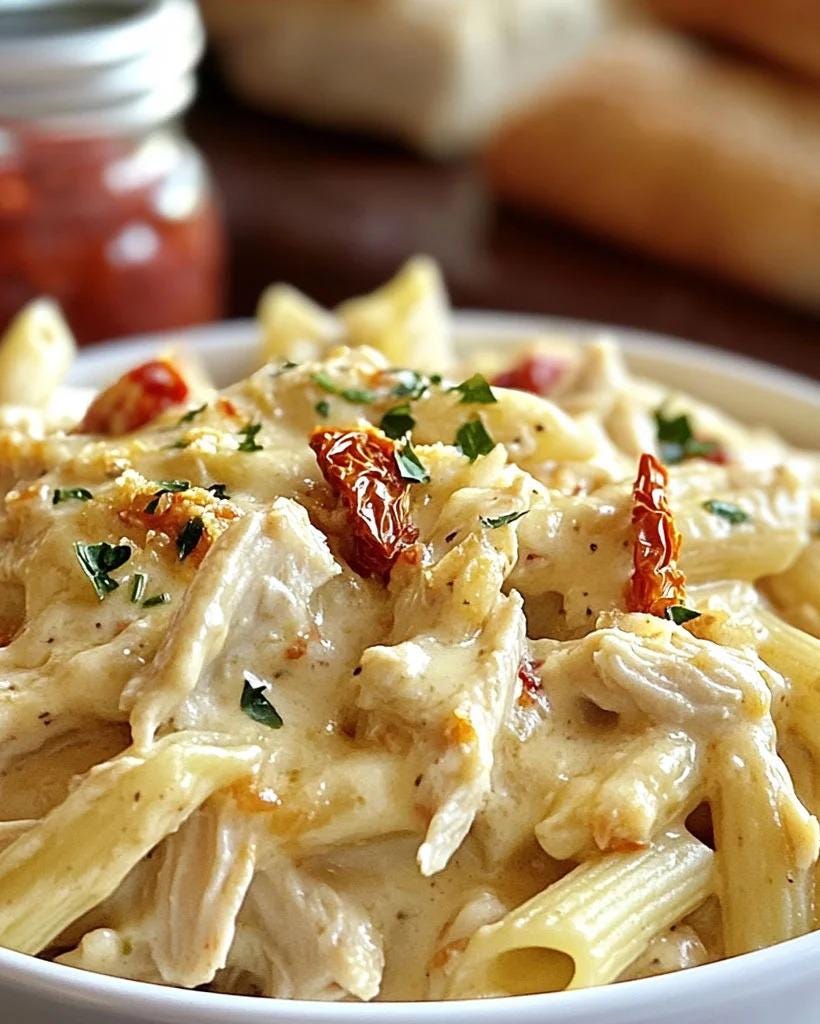 Savor the rich and creamy goodness of Creamy White Cheddar Chicken Pasta! This indulgent dish featur...