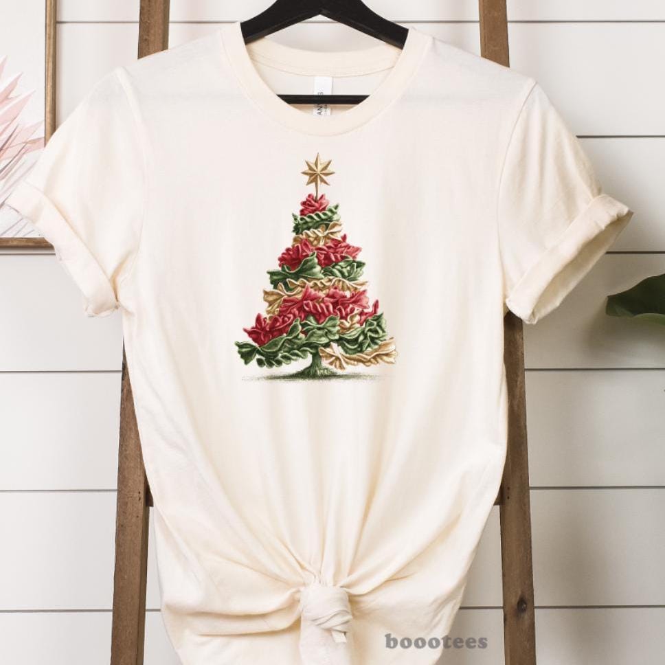 Festive Pasta Noodles Christmas Tree T-Shirt: Retro Italian Mediter...