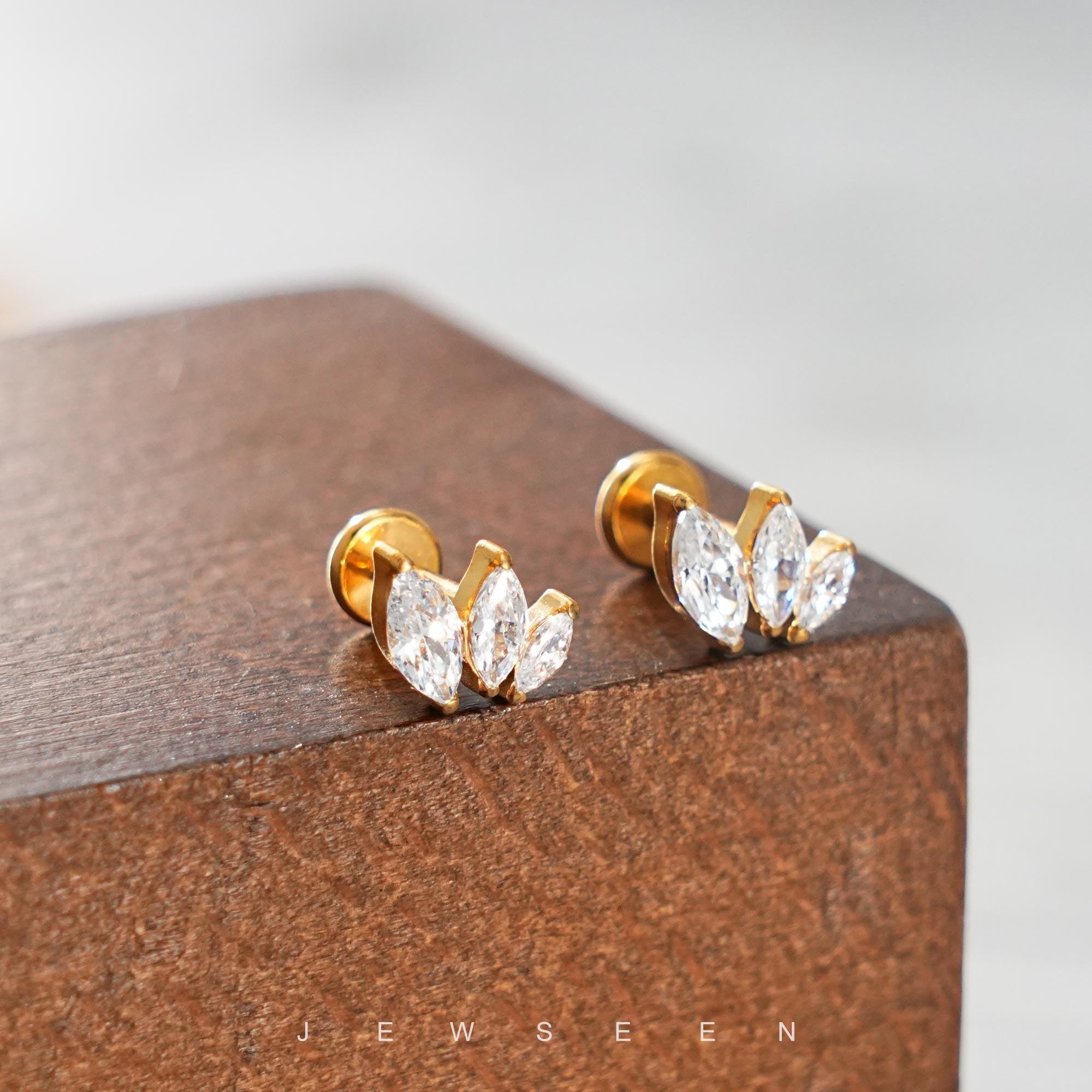 Titanium Connected Chain Cartilage Stud/HelixEarring/Piercing Chain...
