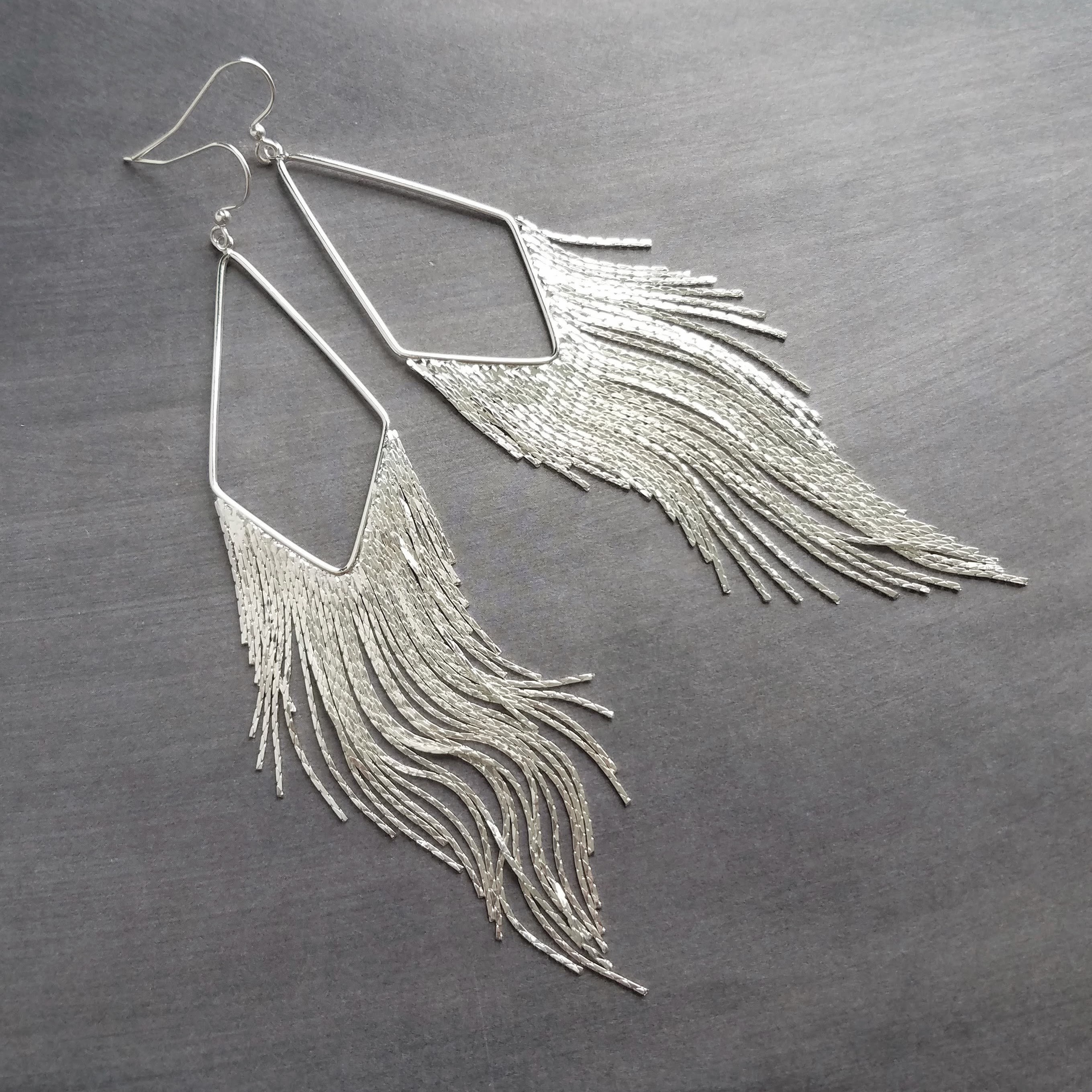 "Silver Chain Earrings, long chain fringe, snake chain, chain ...