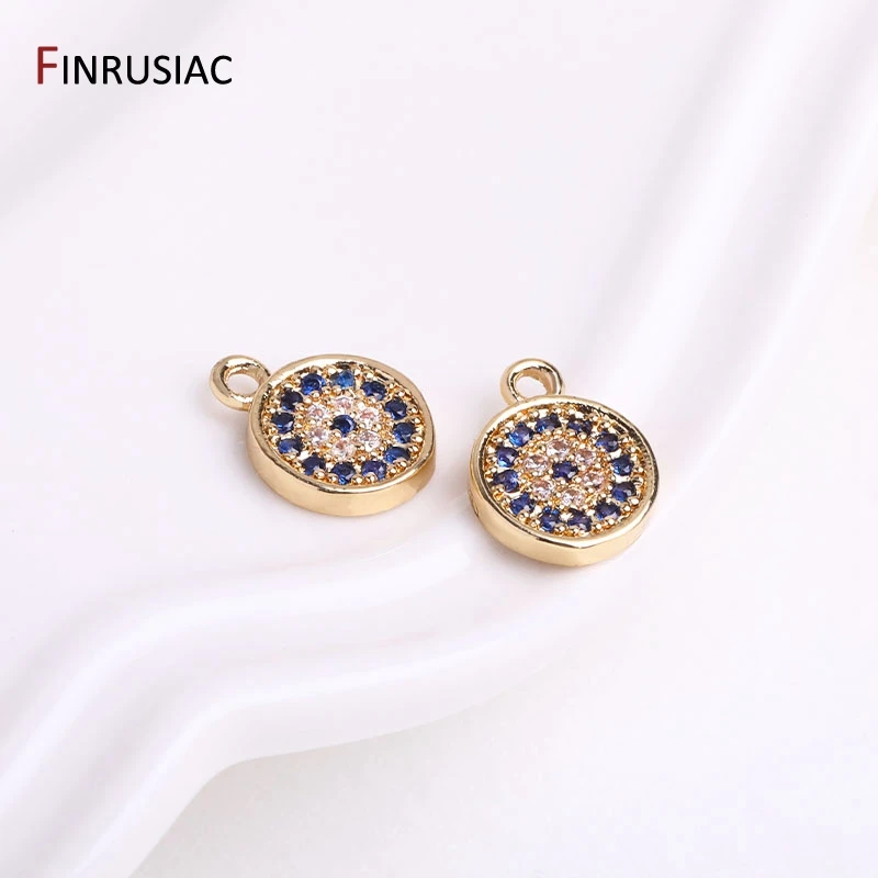 14K Gold Plated Blue Zircon Evil Eye Charms 7.5mm Blue Eyes Pendants For Earring Making Jewelry Maki...