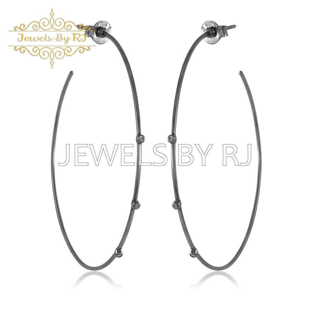 925 Silver Three Diamond Hoop Earring, Diamond Hoop Earrings, Diamo...