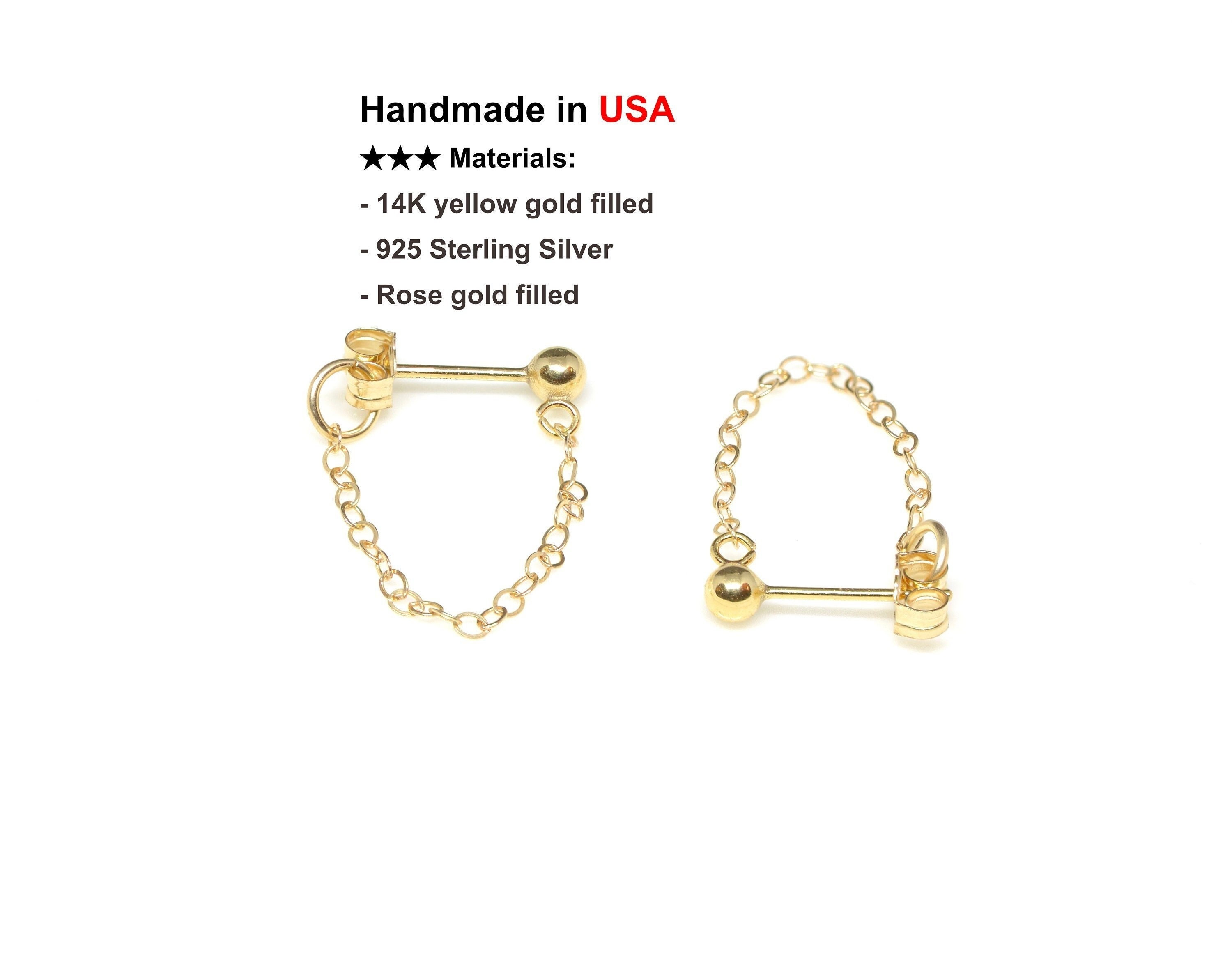 14K Gold Filled Chain Stud Earrings - Gold Dangle Earrings - Chain ...
