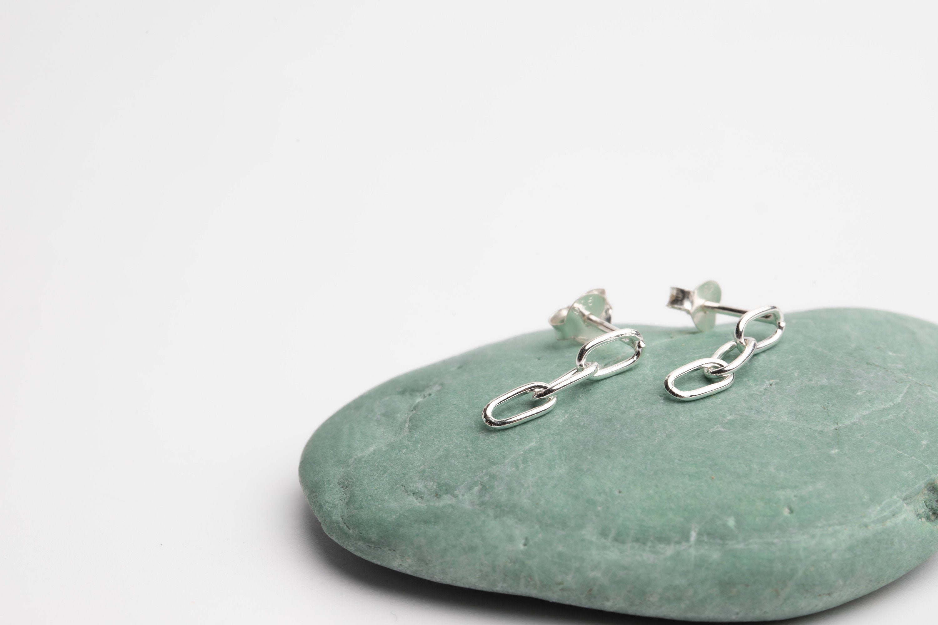 Chain Earrings sterling silver stud earrings, silver studs, silver ...
