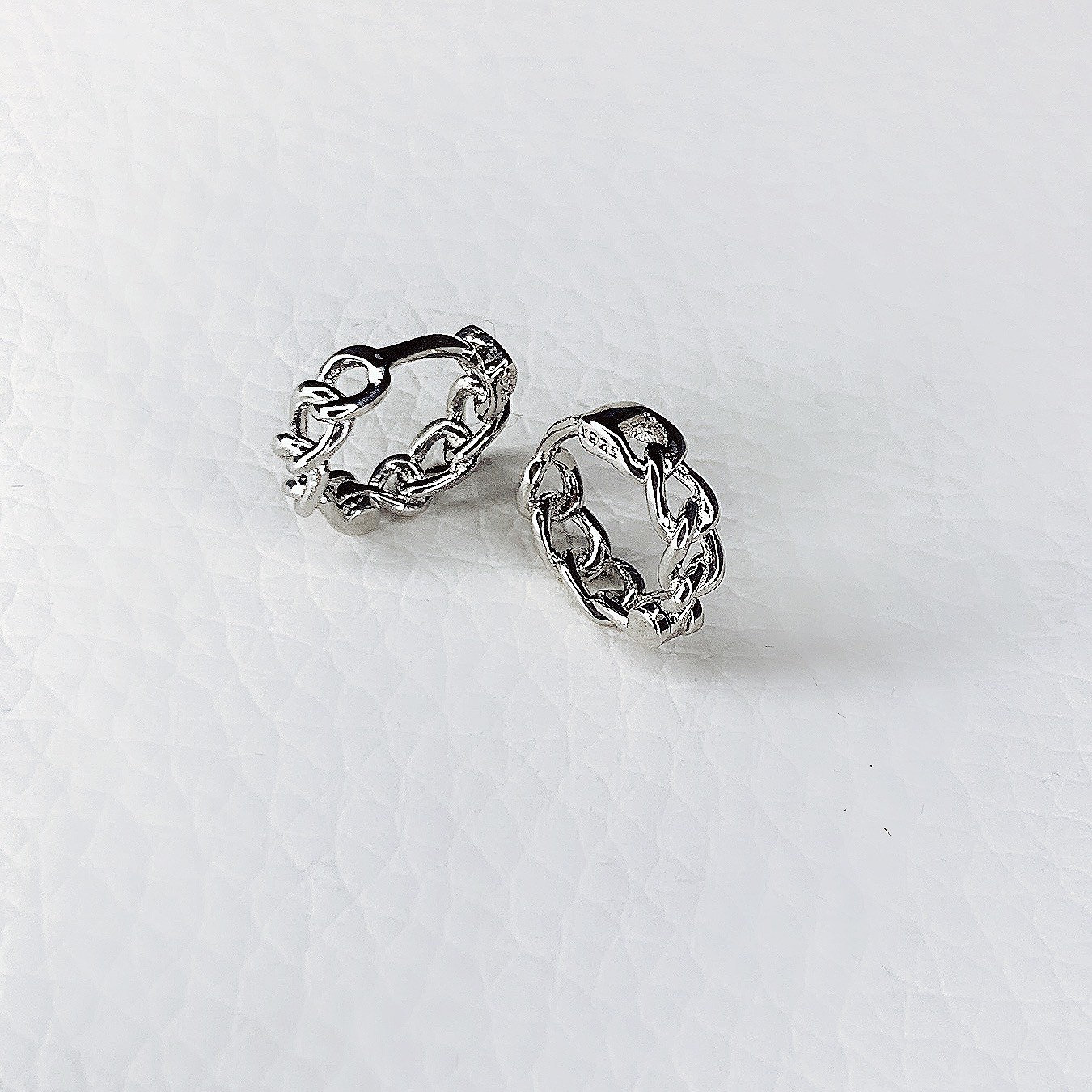 Silver Chain Link Huggie Earrings, Sterling Silver Huggie Hoop Earr...