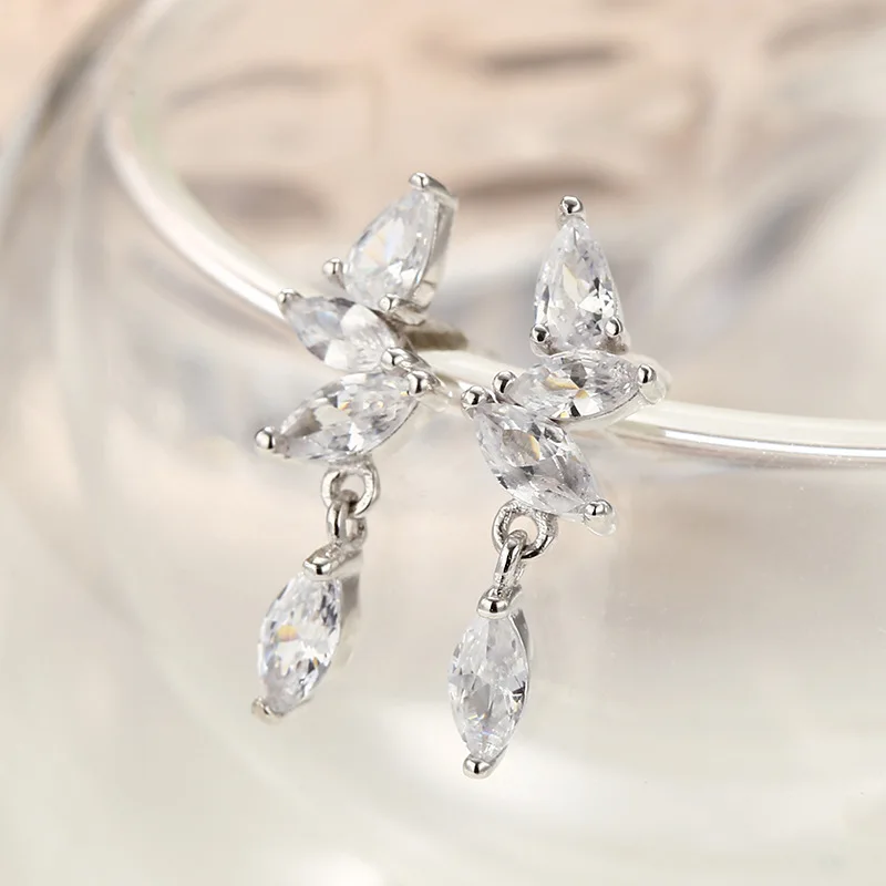 S925 Sterling Silver Earrings Temperament Branches Diamond Sterling...