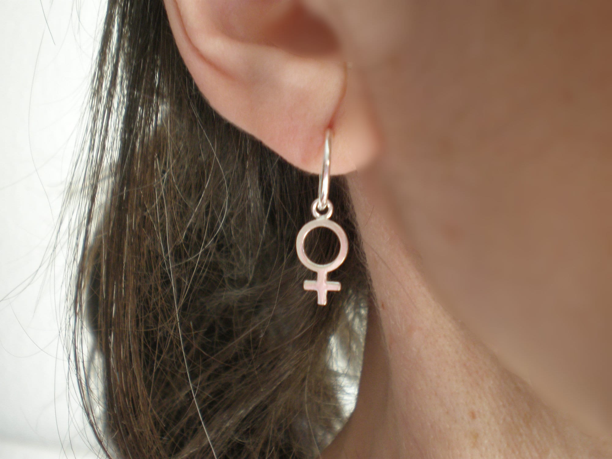 Silver woman symbol earrings, Sterling silver earrings, Female symb...