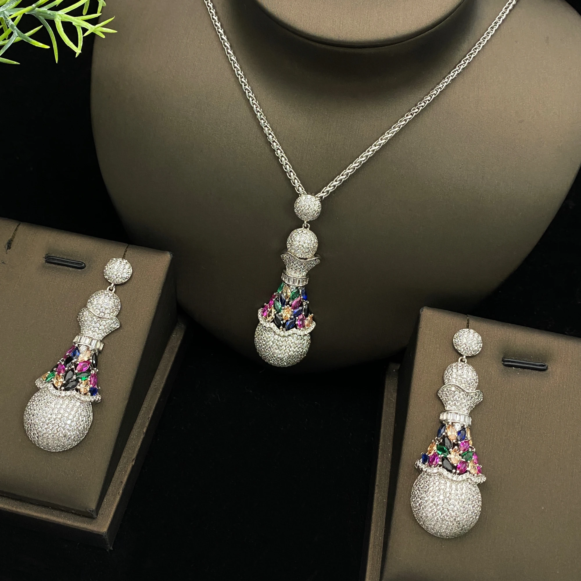 JRH Orb Set 2PCS Glittering Plated Sphere Necklace Earrings Sparkling Zirconia Pendant Women's Holid...