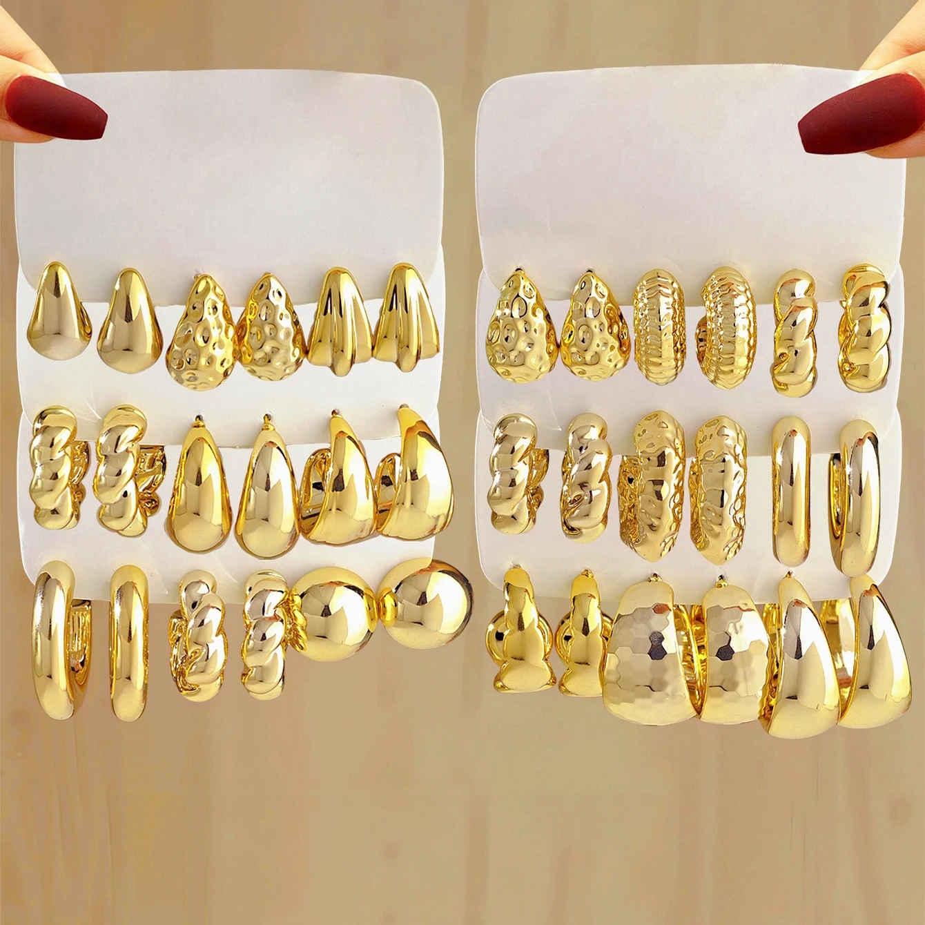 Vintage CCB Drop Sphere Hoop Earrings Set Irregular Twist C Shape Women Accessories
