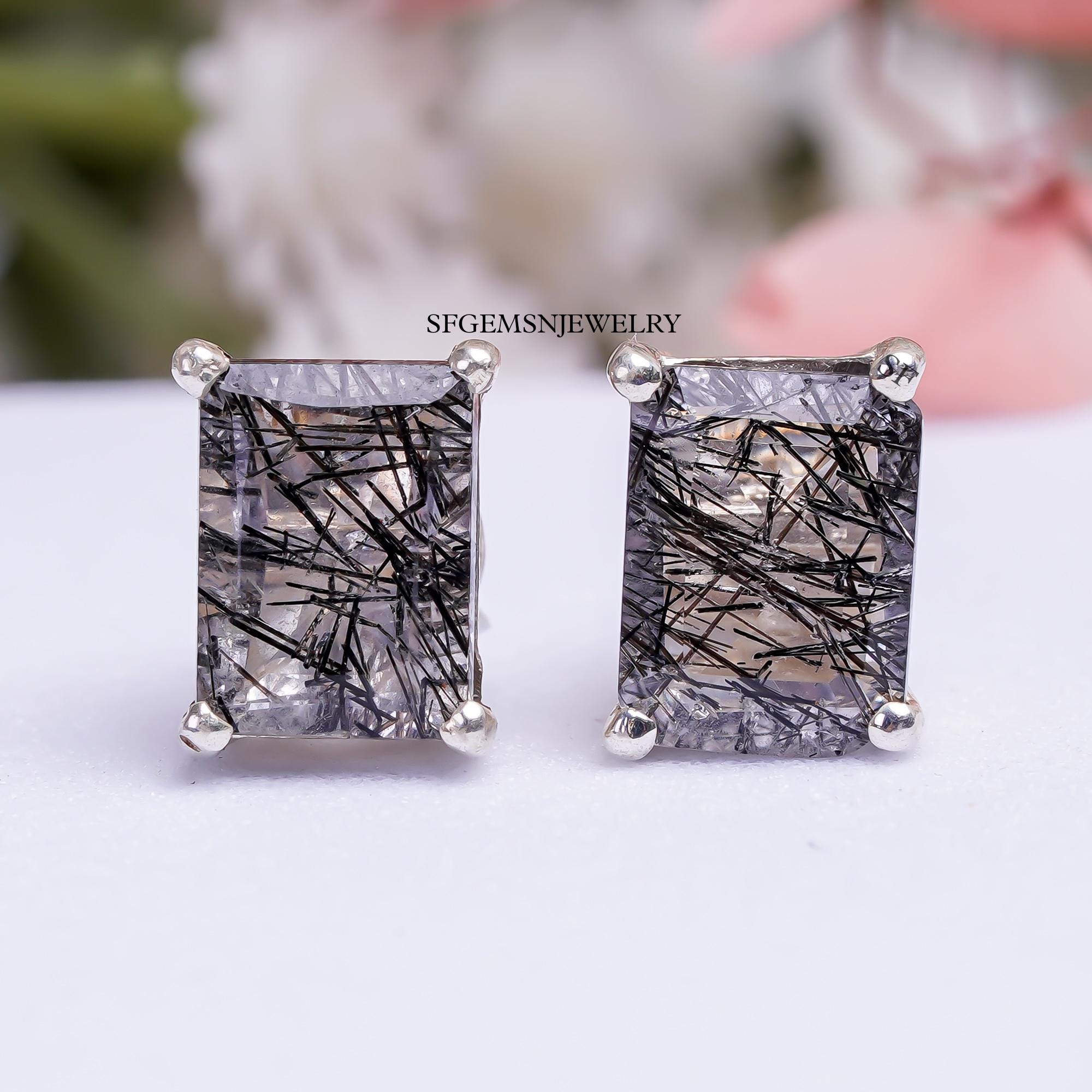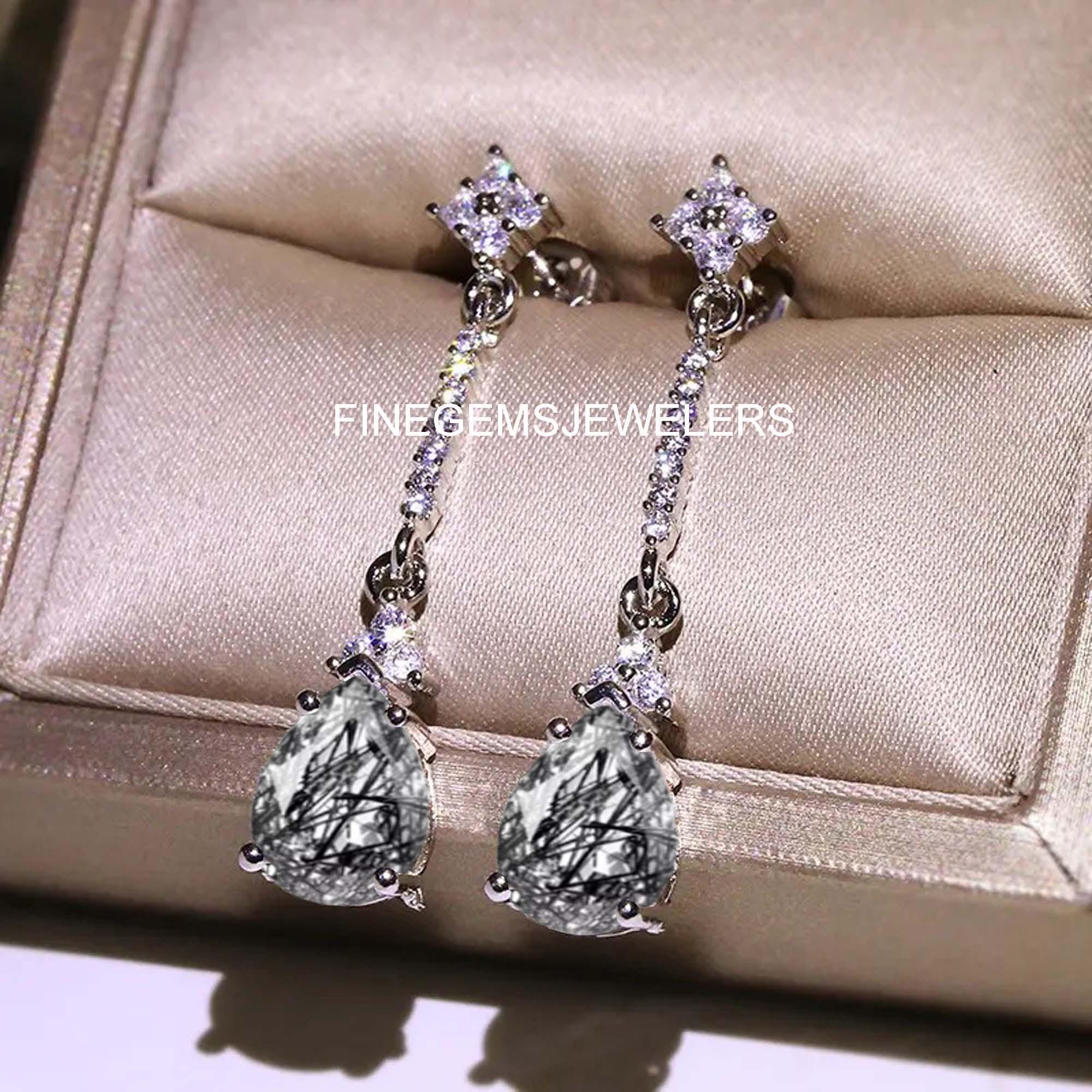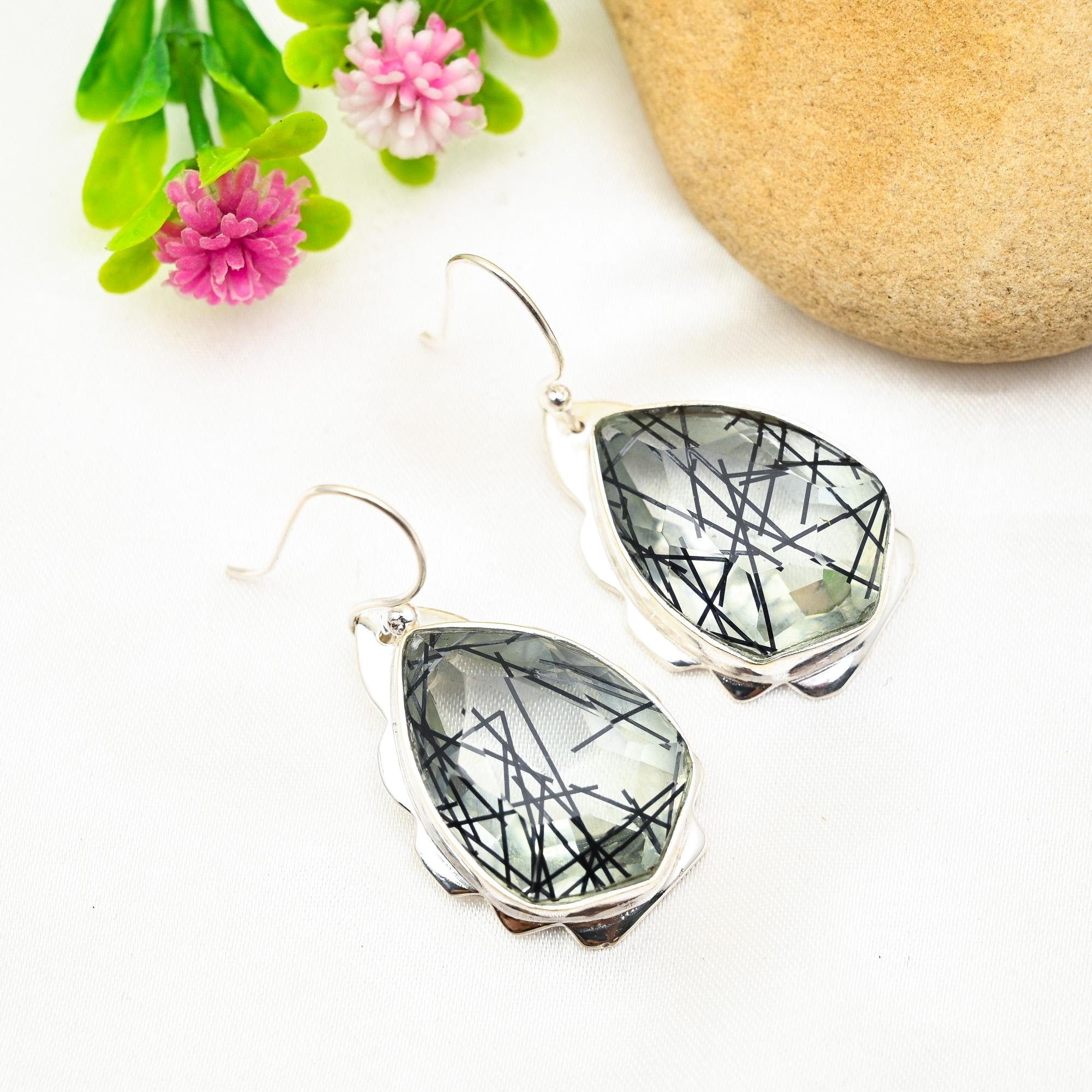 Black Rutile Earrings 925 Sterling Silver Earrings Black Rutile Gem...