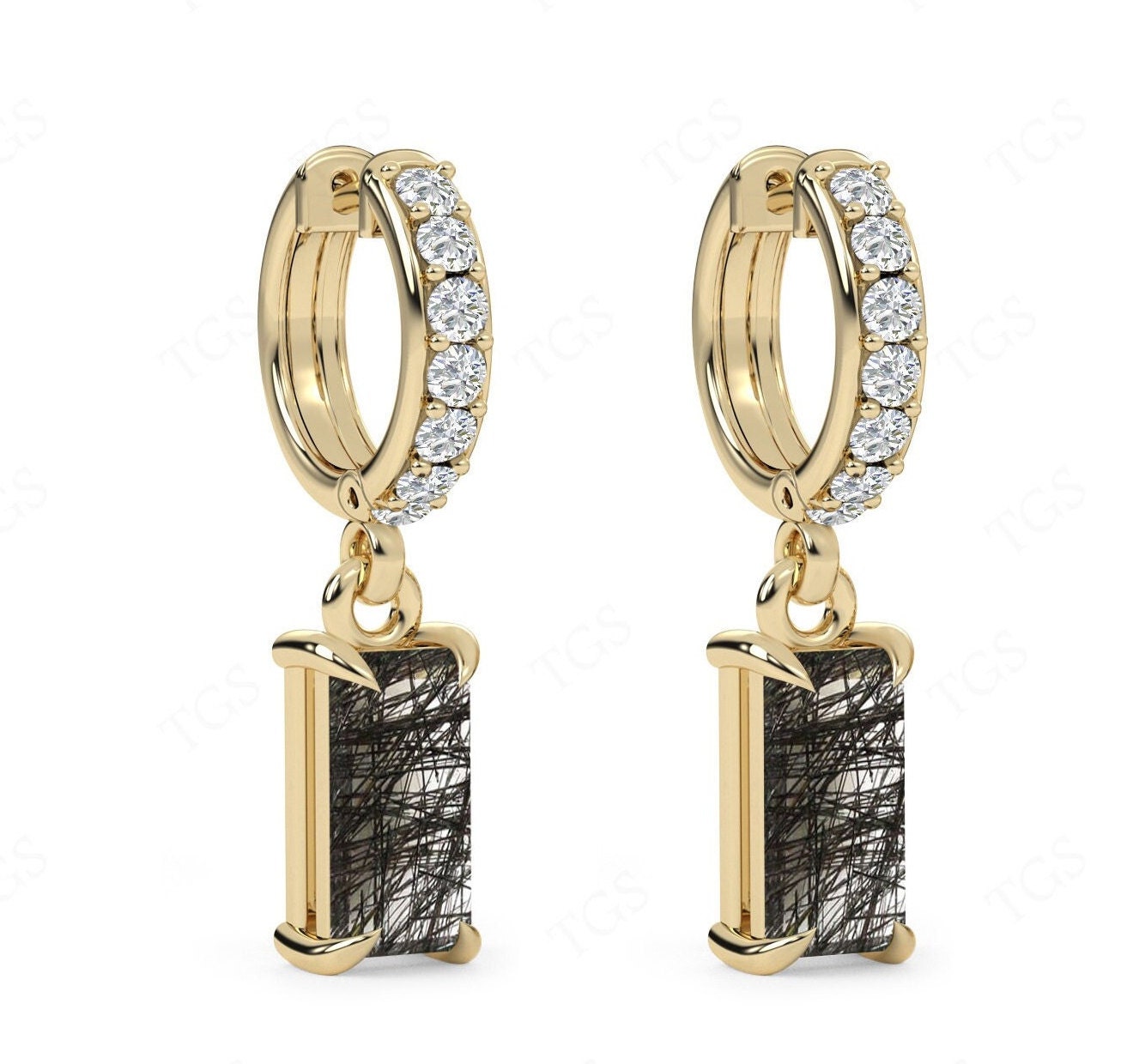 Studs Earrings Black Rutile , Quartz Emerald 6*8 mm Earrings, Rutil...