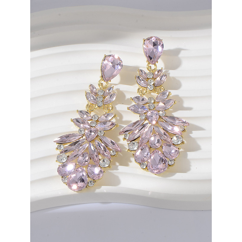 Women's Pink Crystal Drop Earrings – Elegant Statement Jewelr...