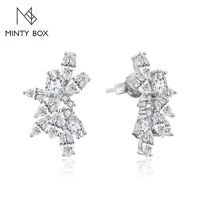 MINTYBOX Moissanite Diamond Cluster Stud Earrings Solid S925 Sliver...