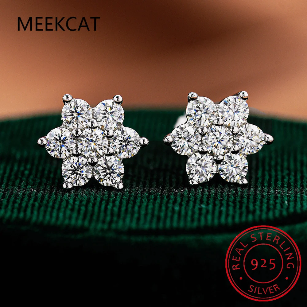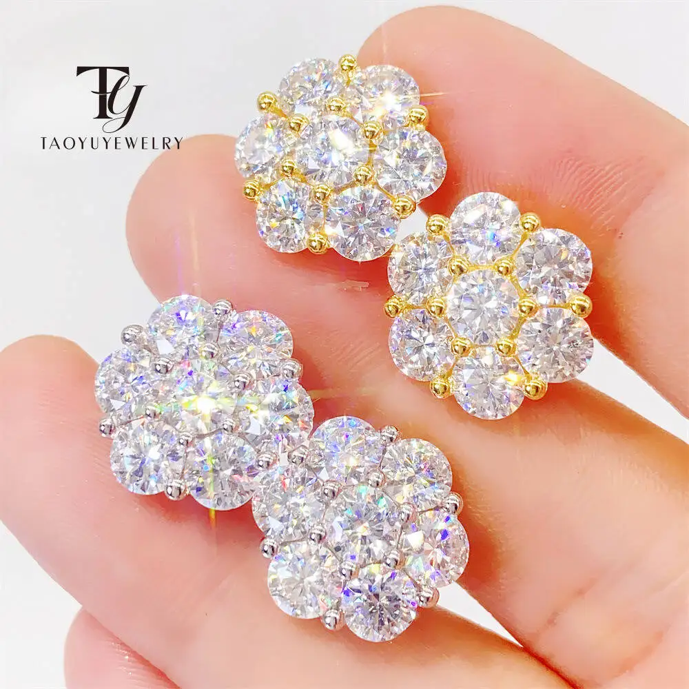 TY Hot Flower Full Moissanite Stud Earrings For Women 2.5/3mm 925 Sterling Silver Diamond Cluster Ea...