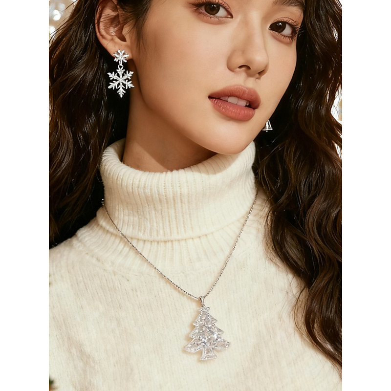Gender:Women's; Gemstone:Rhinestone; Shape:Snowflake; Style:Christmas,Elegant; Jewelry Type:Necklace...